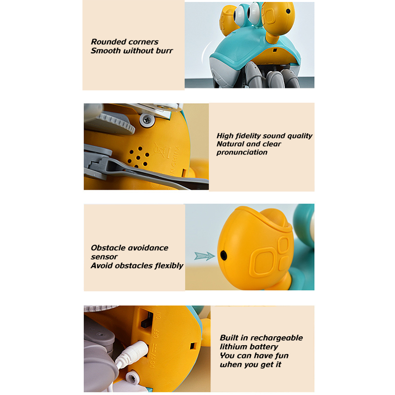 1. Светильник-игрушка для малышей: когда наш краб-спасатель встречает препятствия (руки или ноги ребенка), он автоматически движется в противоположном направлении, очень чувствителен для взаимодействия с ребенком, И сопровождается музыкой и светильник s, чтобы увеличить удовольствие