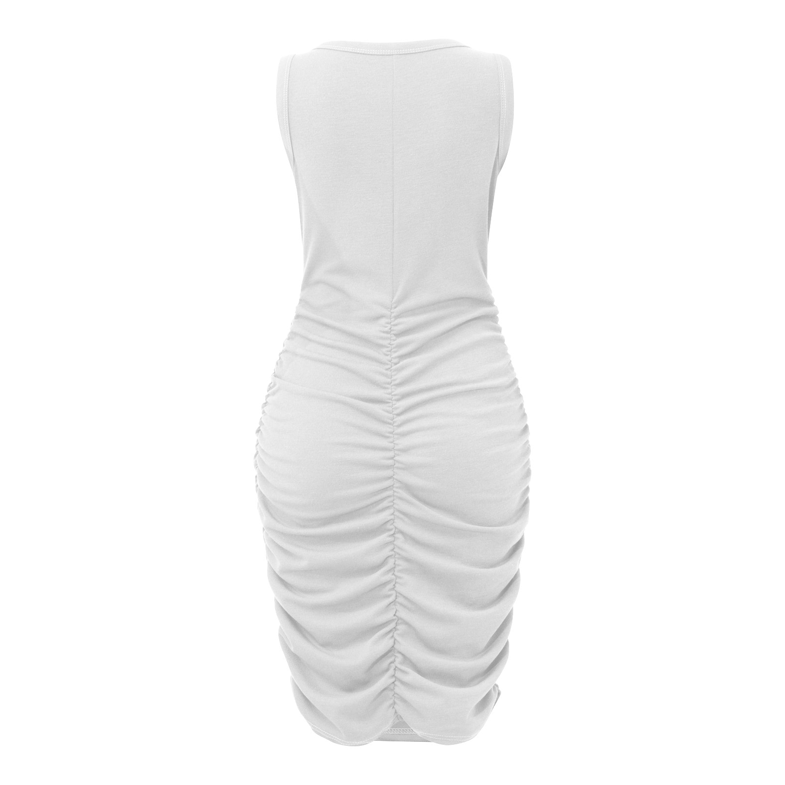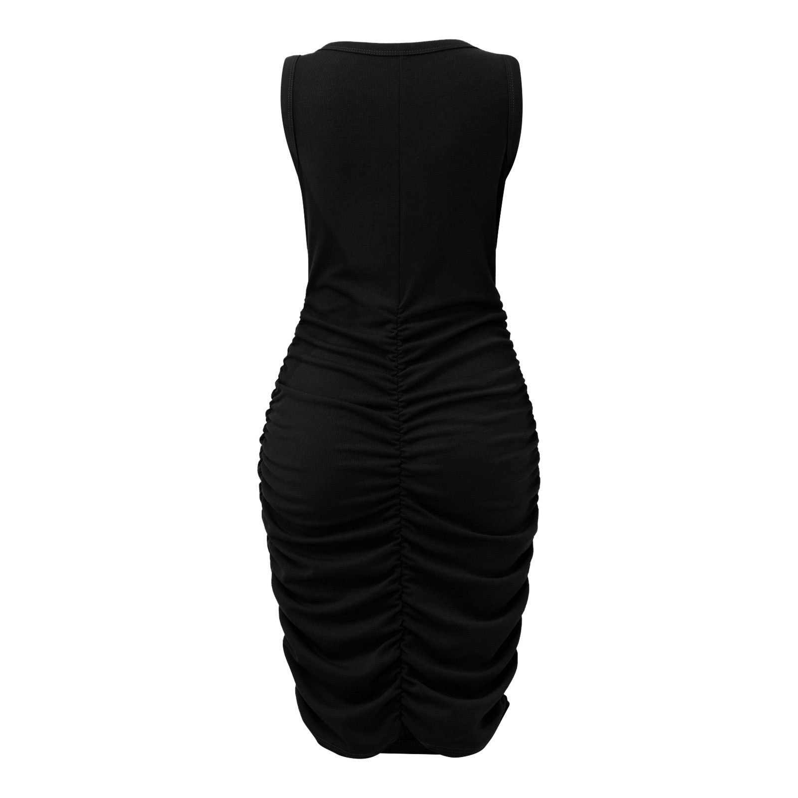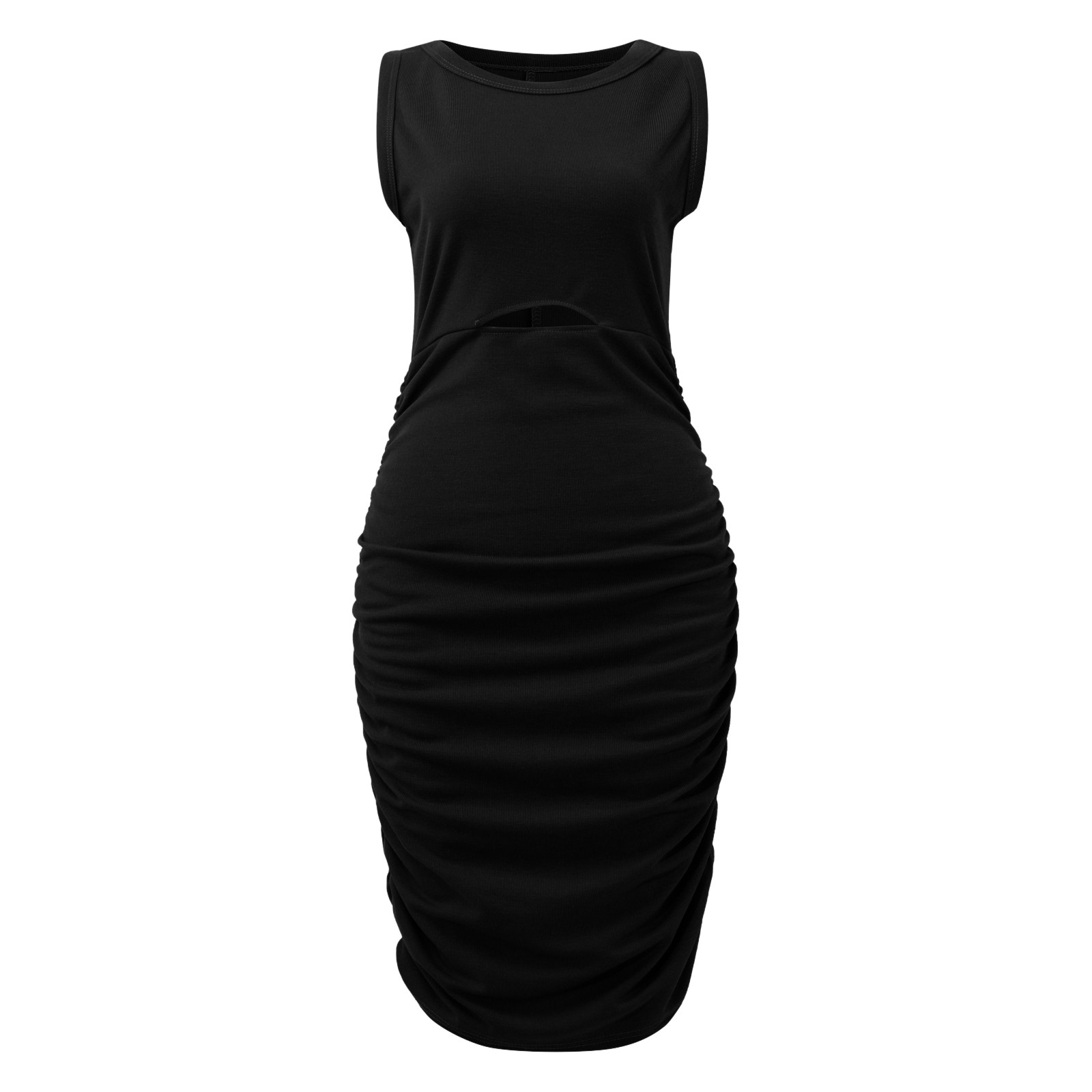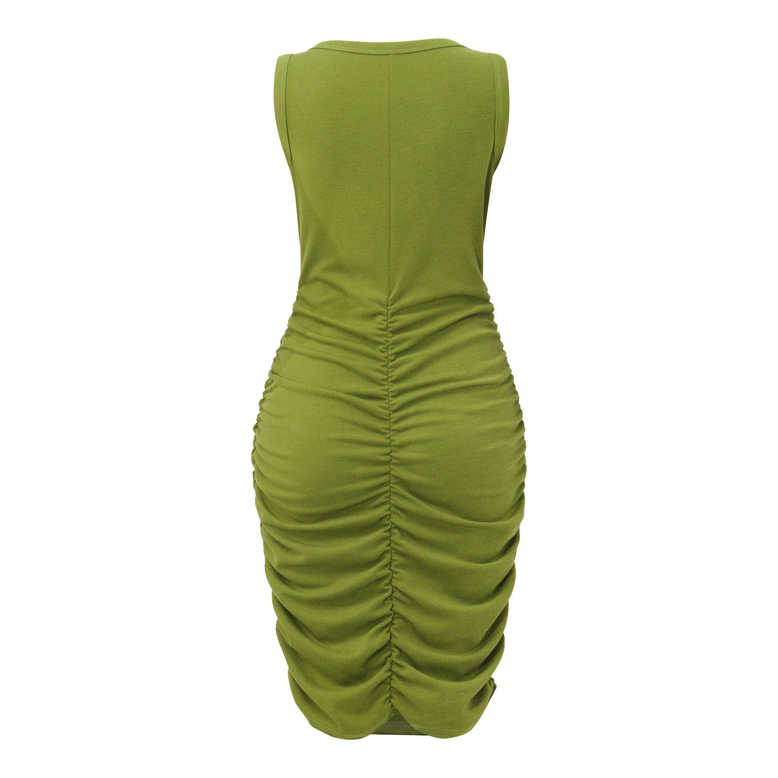 Женское однотонное платье без рукавов с круглым вырезом и рюшами