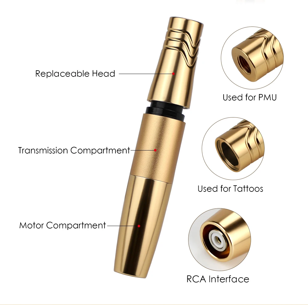 1. Новый дизайн с двойной головкой, может работать как с PMU, так и с татуировкой, в зависимости от различных операционных элементов легко переключается. Вы можете сделать эту татуировку ручки, Перманентный макияж бровей, линию губ, линию глаз, все в одном тату-машине.
