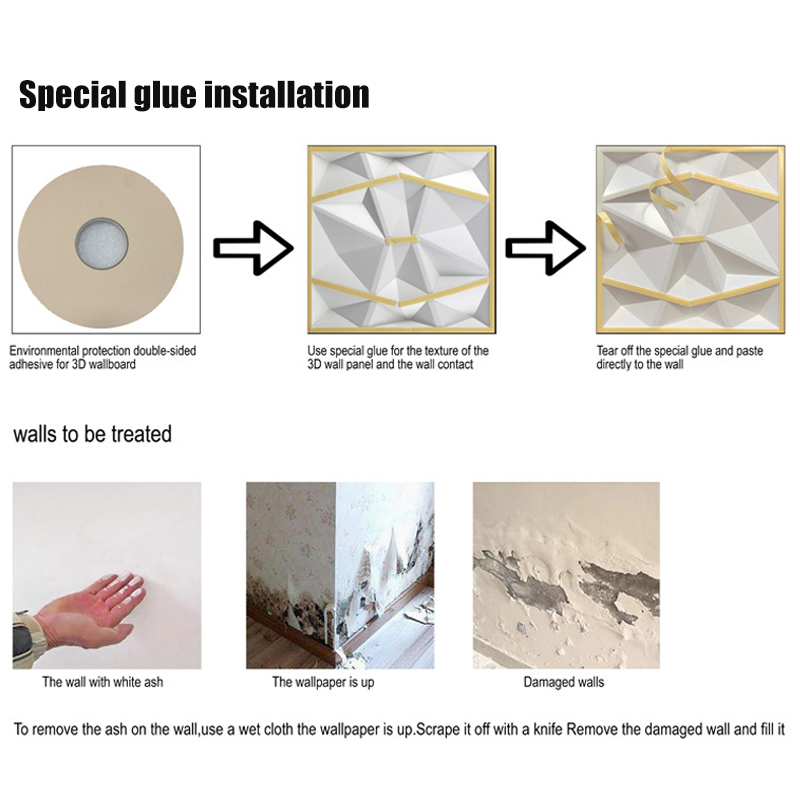 <Простая установка: 3D стеновые панели позволяют быстро устанавливать с помощью клея. (Примечания: клей не входит в комплект)