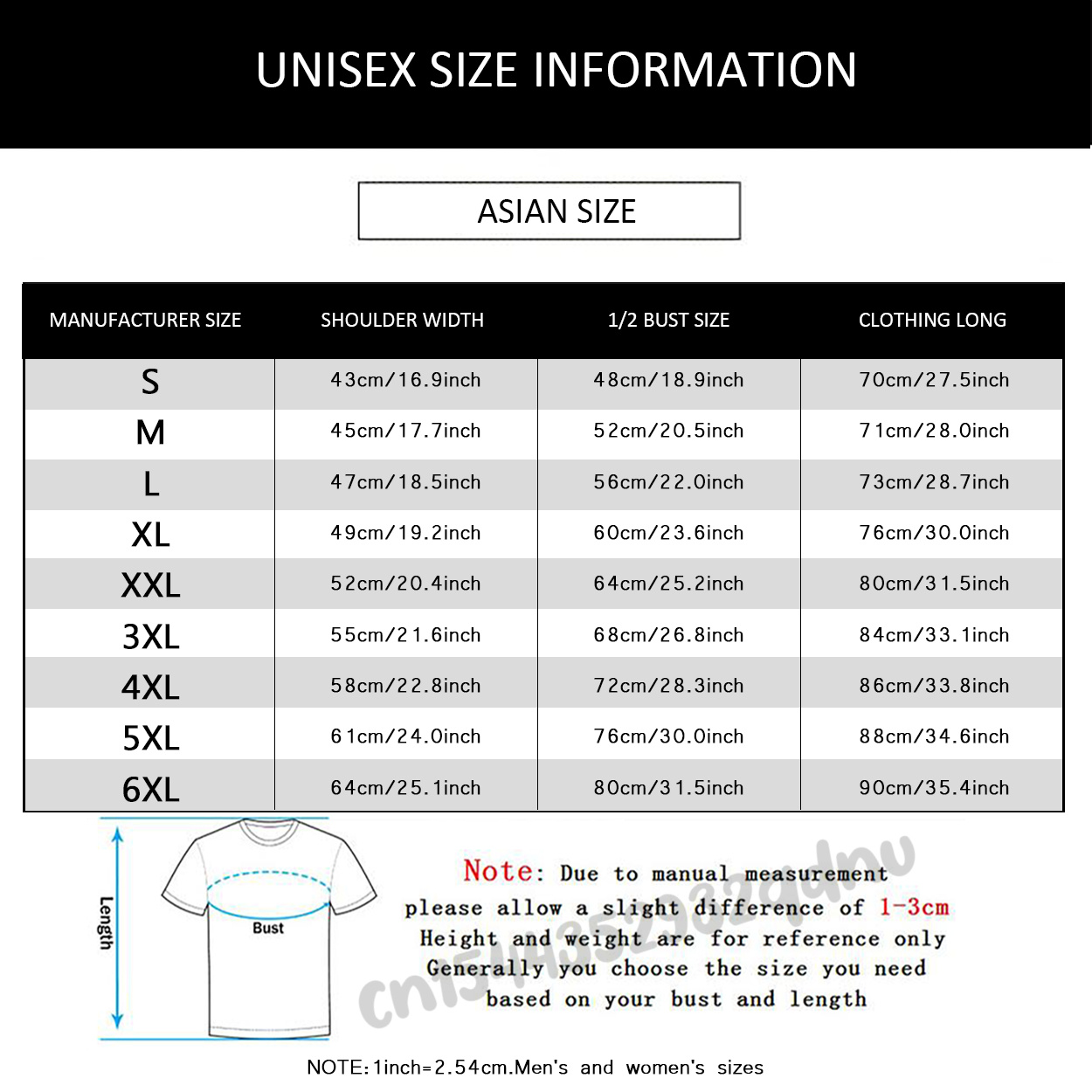 2. Эта Таблица размеров предназначена только для справки. Допускается погрешность в 1-3 см для измерения вручную.