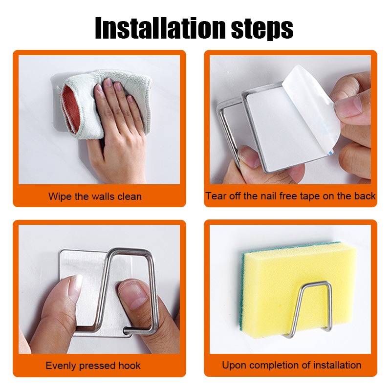<Практичный в использовании: держатель губки из нержавеющей стали устойчив к коррозии и водонепроницаемости. Хороший клей, не легко отвалиться, прочный и долговечный.