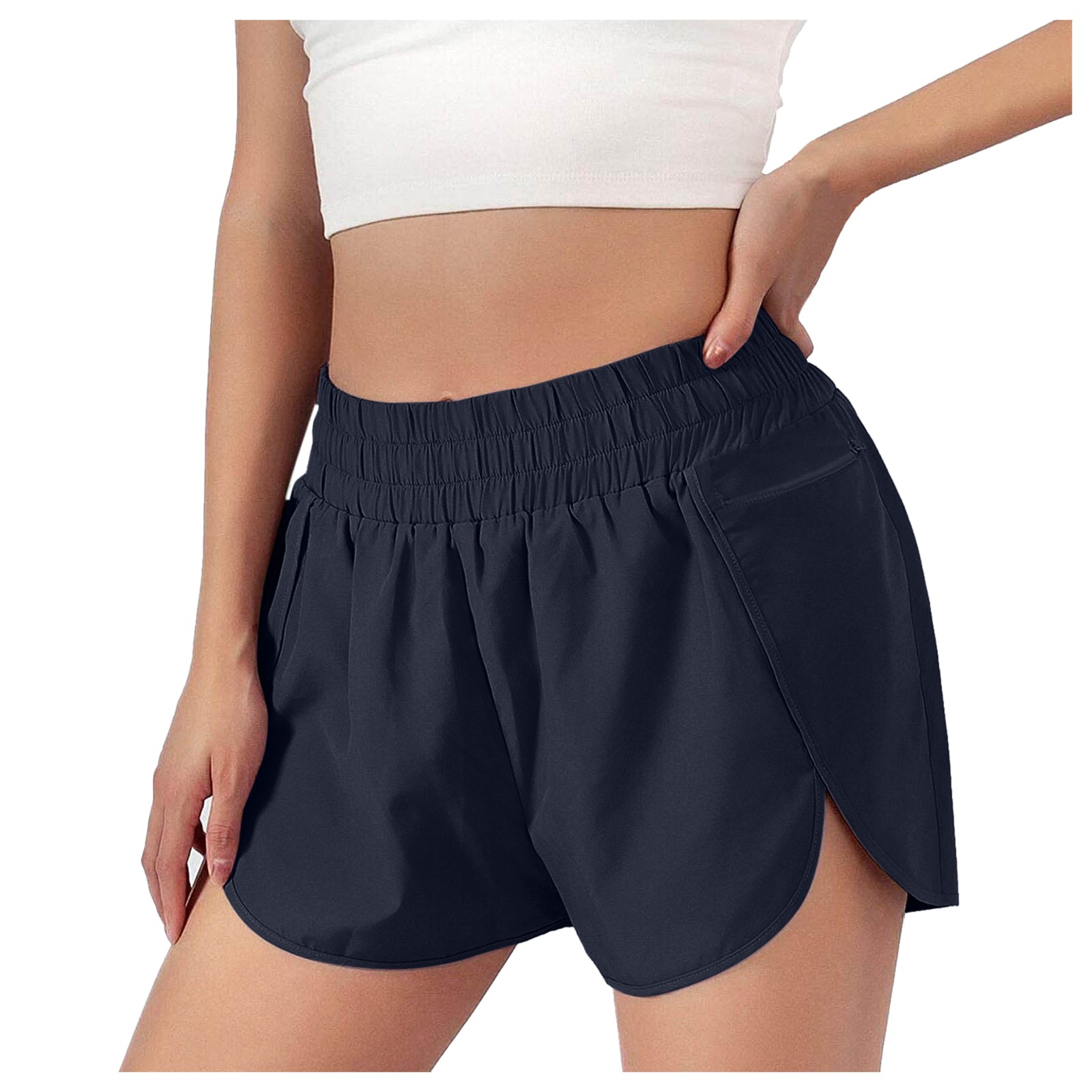 Женские шорты для тренировок имеют боковой карман, он может держать ваши вещи, когда вы тренируетесь или бегаете. Быстросохнущая ткань помогает сохранить сухость и комфорт. Подходит для жаркого лета. Двухслойный дизайн с подкладкой, не беспокойтесь о воздействии. Отлично подходит для йоги и даже плавания.