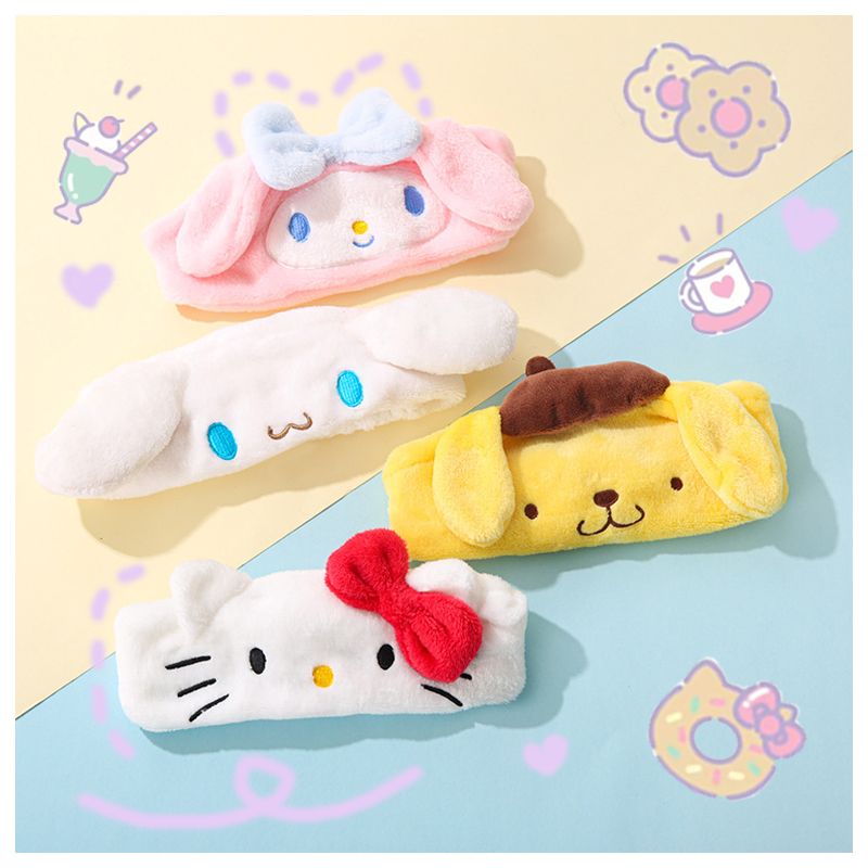Sanrioed Kawaii плюшевая повязка на голову с героями мультфильмов: My Melody Cinnamoroll Purin Dog Anime Make Up/повязка для волос с эффектом мытья лица