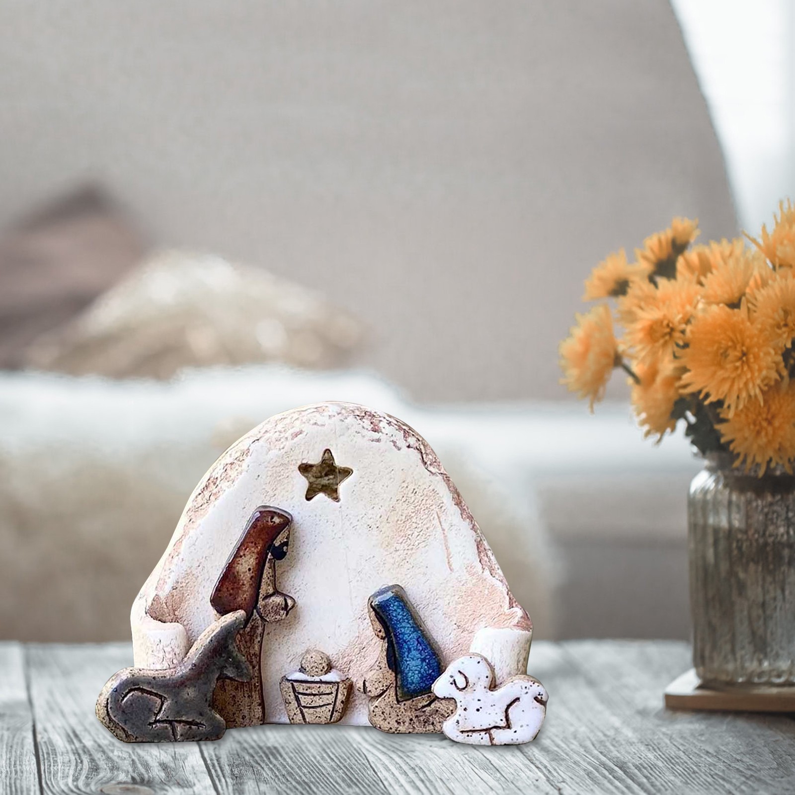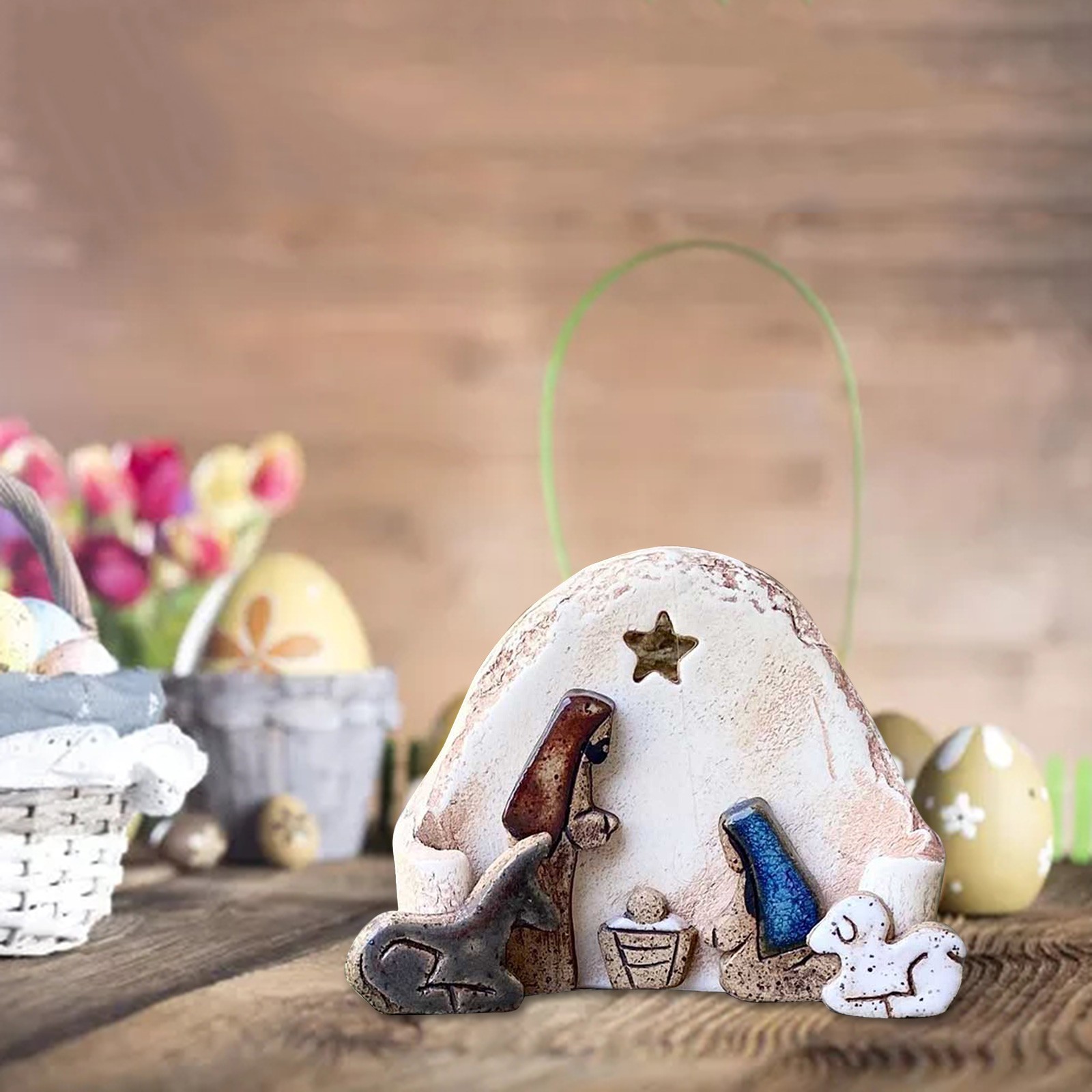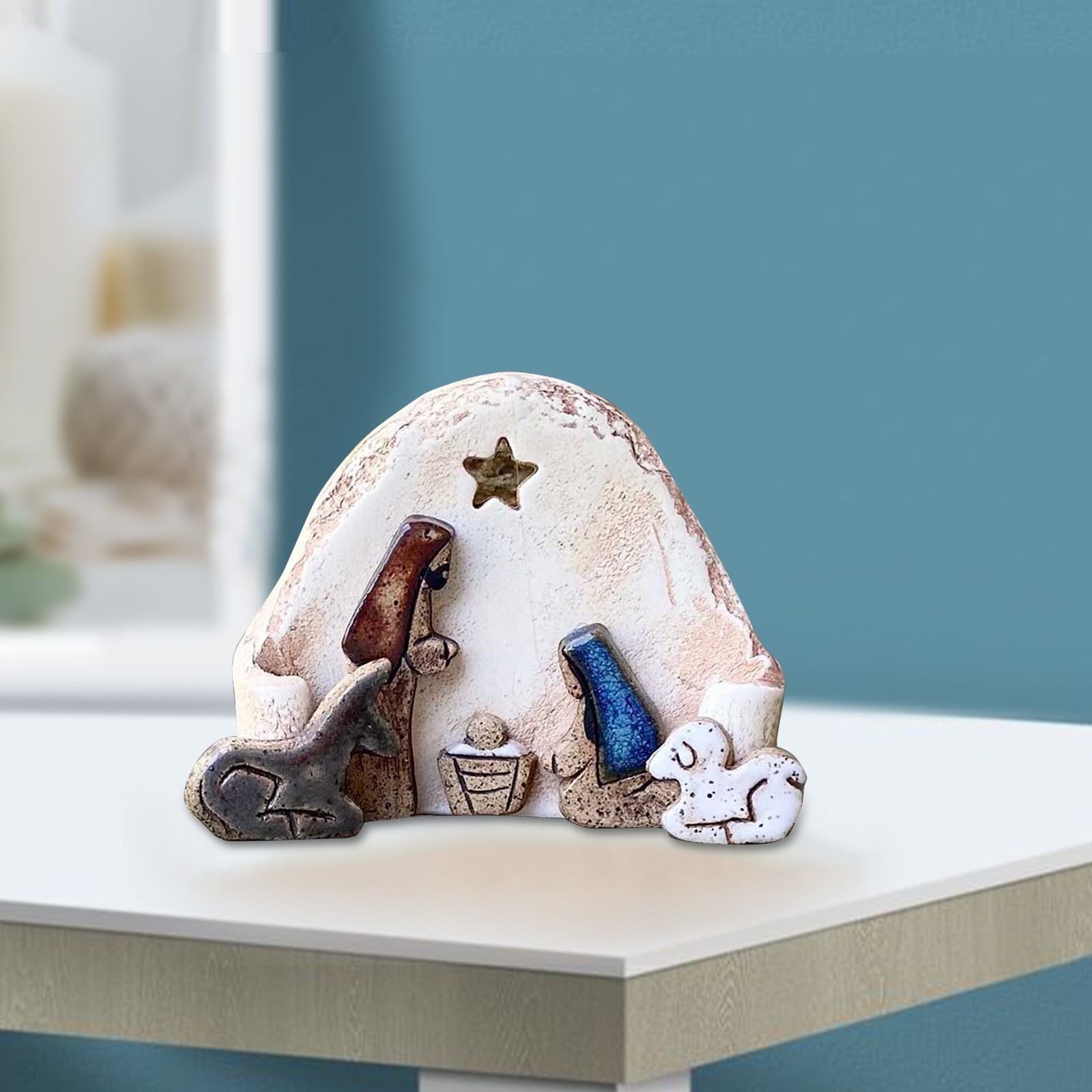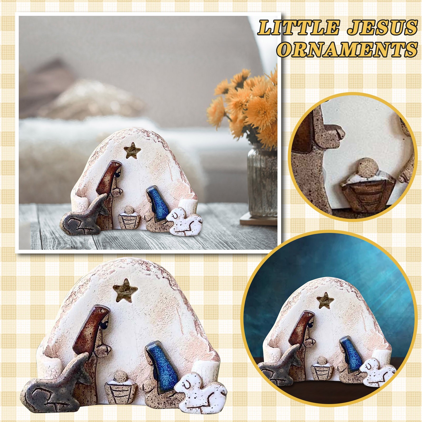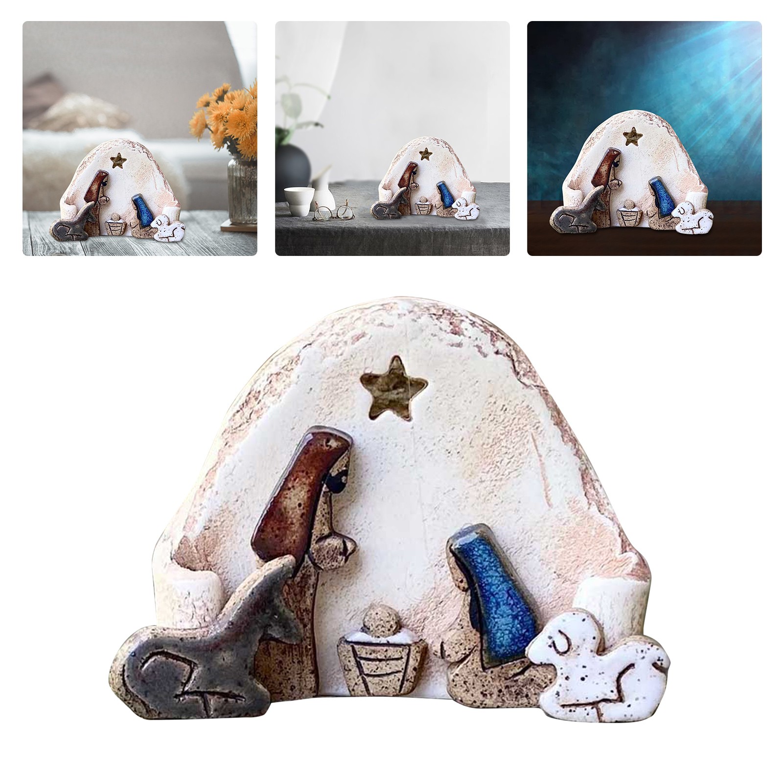 ✨Часть звезды выдолблена, чтобы светильник сиял на ребенке Святого Христа, с маленьким осликом и овечкой, защищающей внешний обод. Подходит для отображения на столах, балконах, каминах.