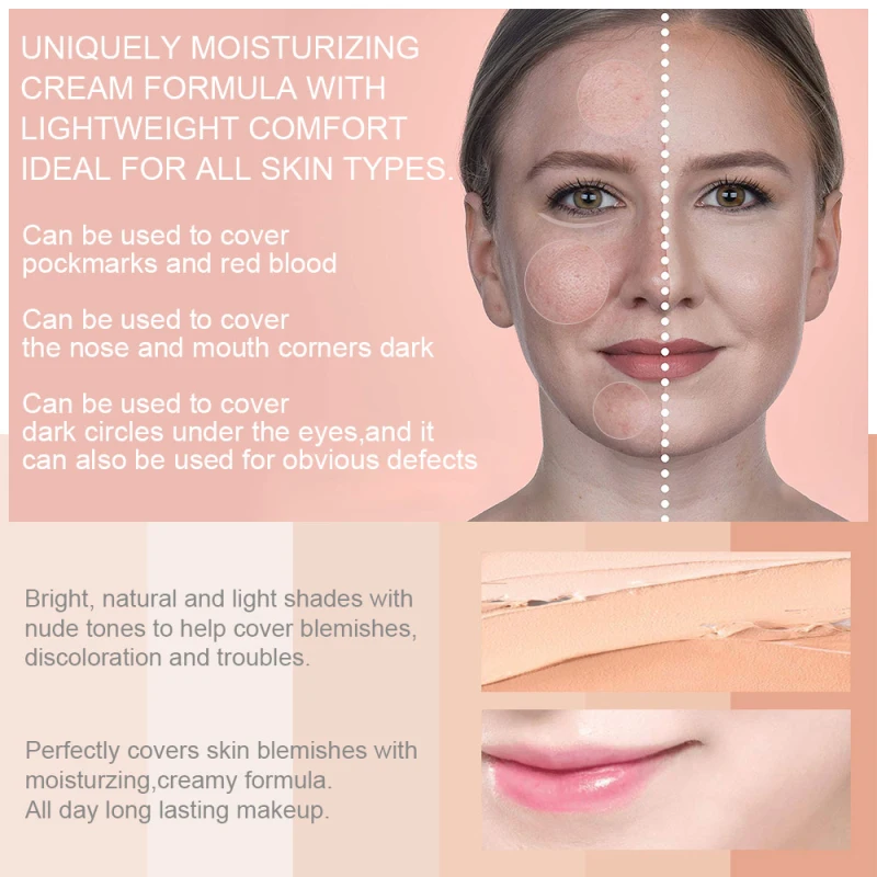 Отличная скрывающая мощность, легко покрывает пятна, акне, пятна и т. д.