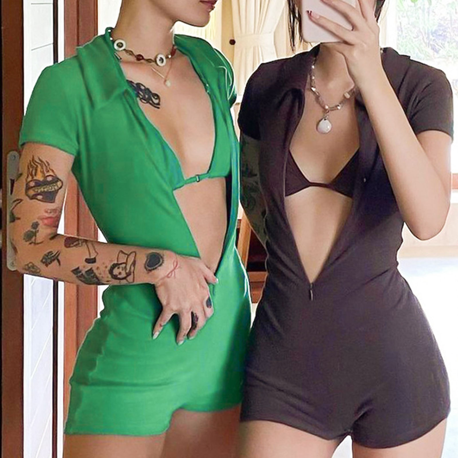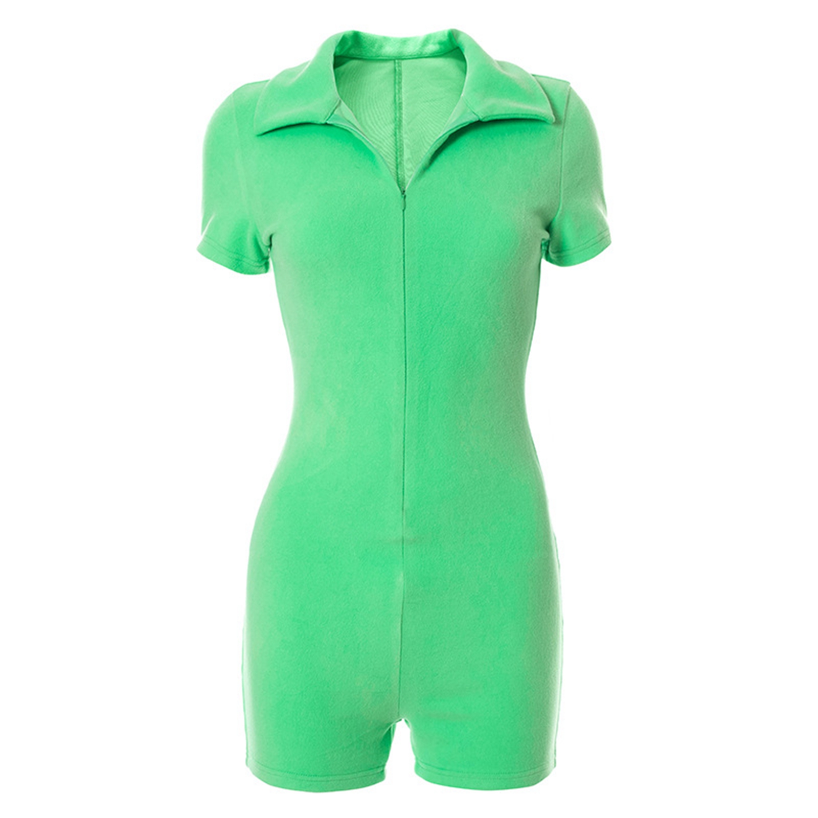 Женский летний Боди, однотонный Облегающий комбинезон с коротким рукавом на молнии