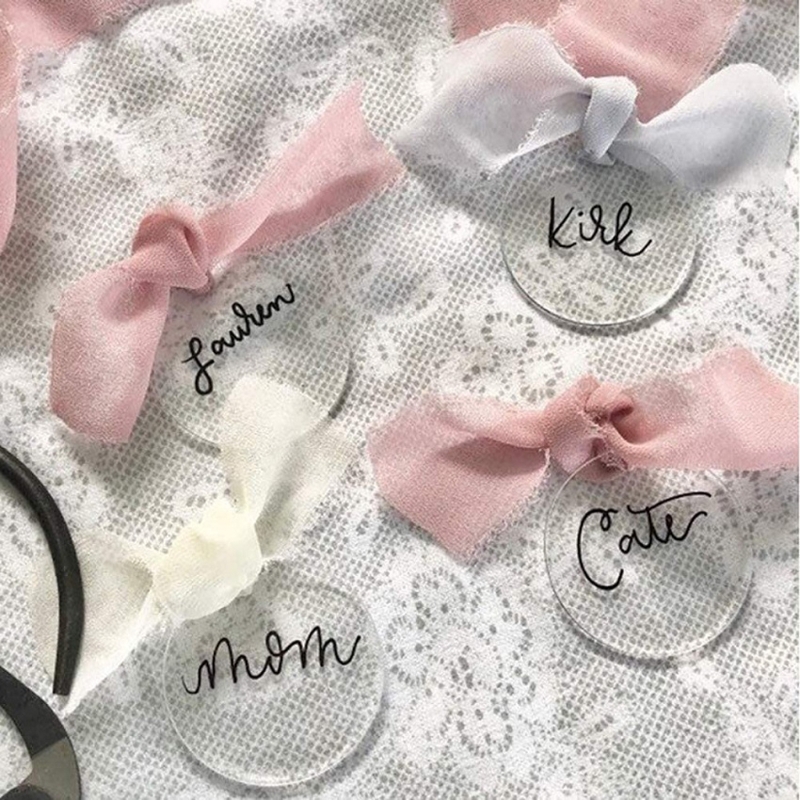 Вы можете нарисовать, вырезать или наклеить красивые наклейки на акриловые брелки заготовки, как вам нравится,