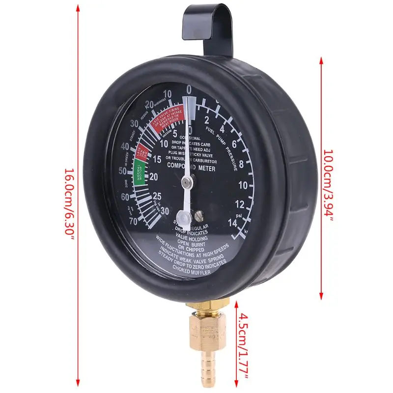 Этот тестер проверит давление топливного насоса и все устройства с вакуумным управлением. Он также диагностирует протекающие клапаны, неправильные сроки, герметичные впускные коллекторы и засоренные муфельные устройства. Комплект поставляется в комплекте с (3) латунными фитингами для подключения к вакуумным и топливным линиям, 2 фута. Трубки и инструкции.