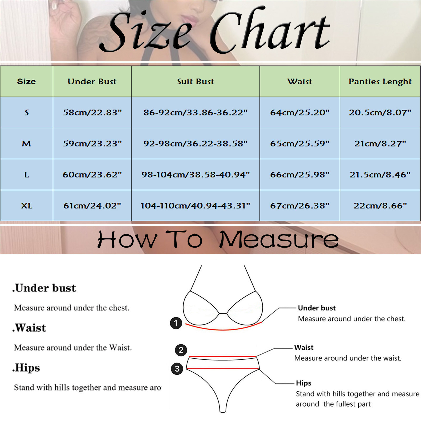 Размеры | Под грудью | Бюст костюма | Талия | Длина трусиков |