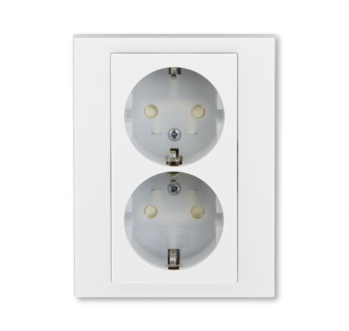 Розетка двойная ABB Levit с заземлением со шторками 16А белый / ледяной 2CHH223457C6001