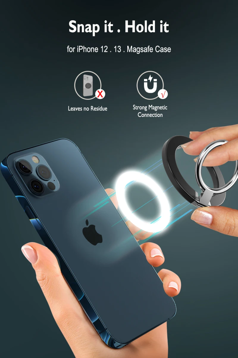 4. [Для IPHONE 12 13] для IPHONE 12 и 13, это может быть непосредственно магнитно привлечено к задней части телефона и может быть разобрано в любое время, без какого-либо влияния на телефон.
