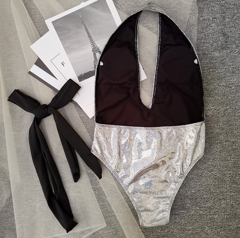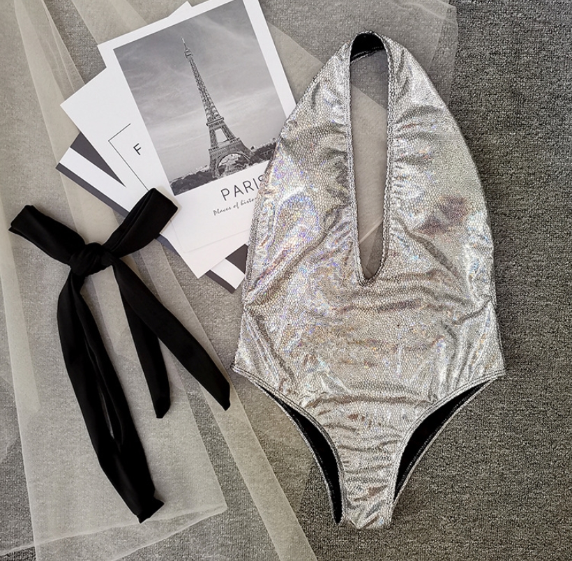Yiiciovy летние сексуальные женские купальники серебристого цвета с вырезом на шее, монокини с поясом, женские бикини, пляжная одежда, купальный костюм, купальный костюм