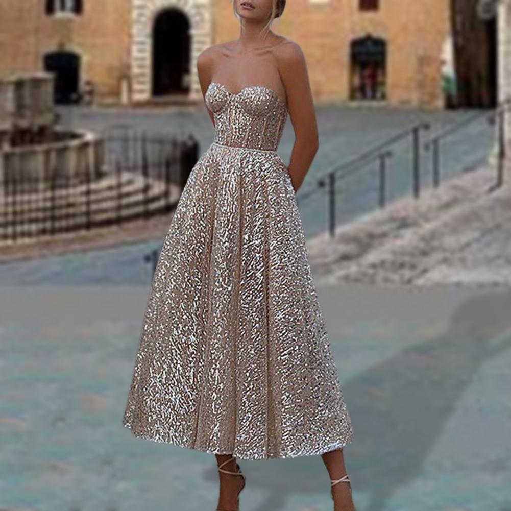 Дизайн с низким вырезом и открытыми плечами придает вам сексуальный вид. Дизайн с блестками делает вас очаровательными и привлекательными в вечерние дни.