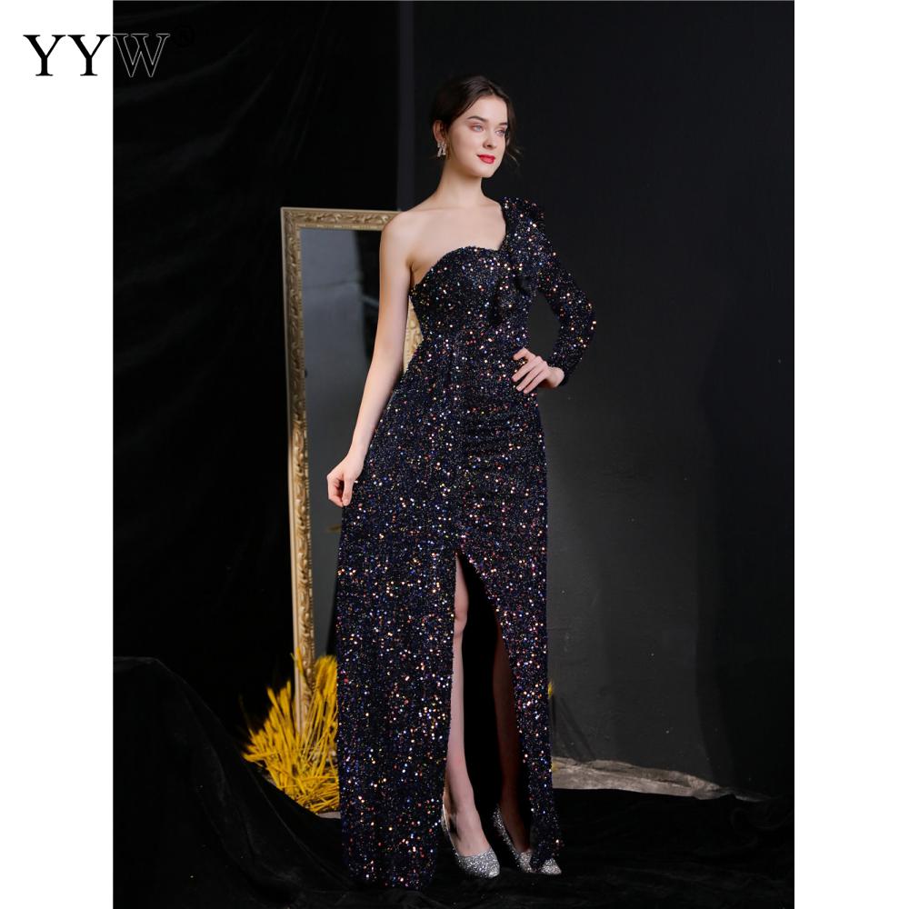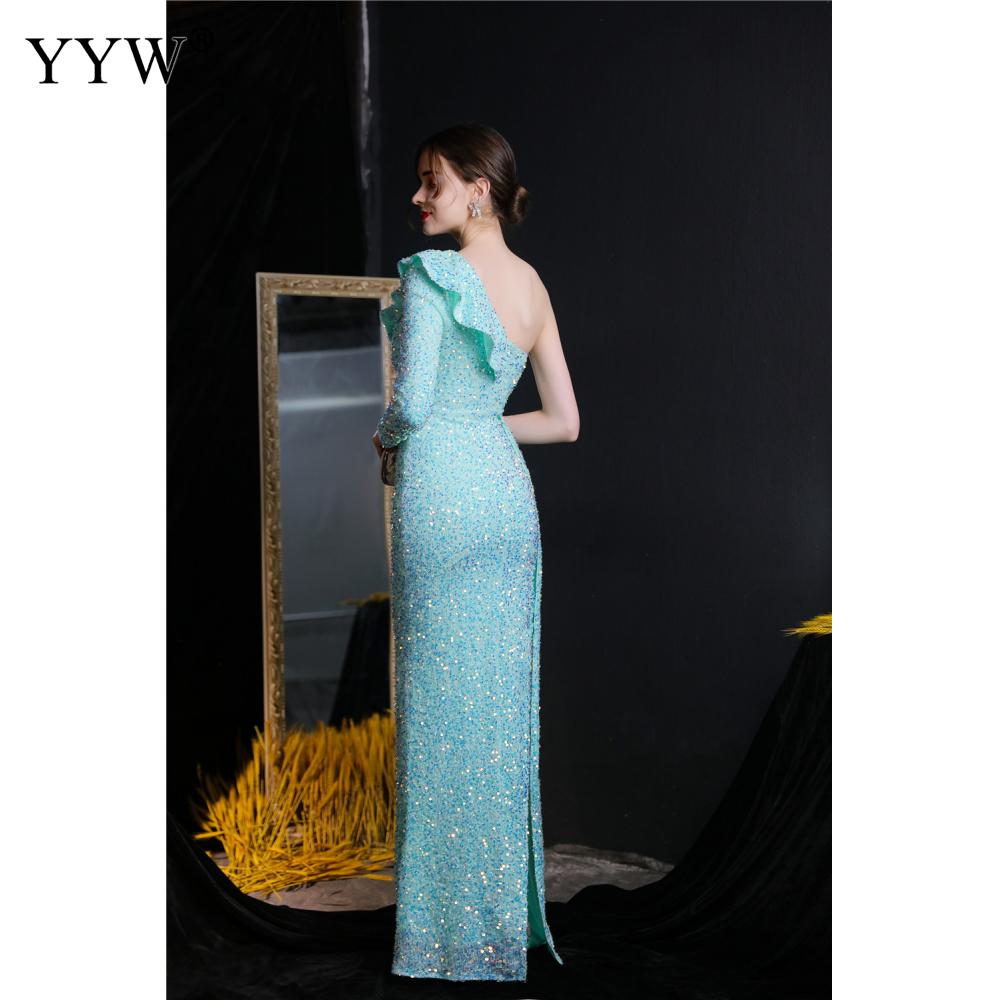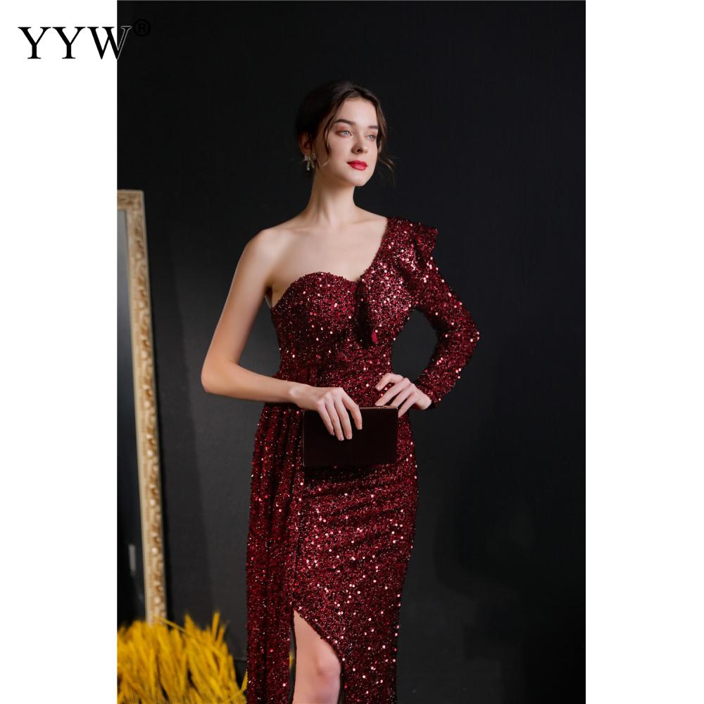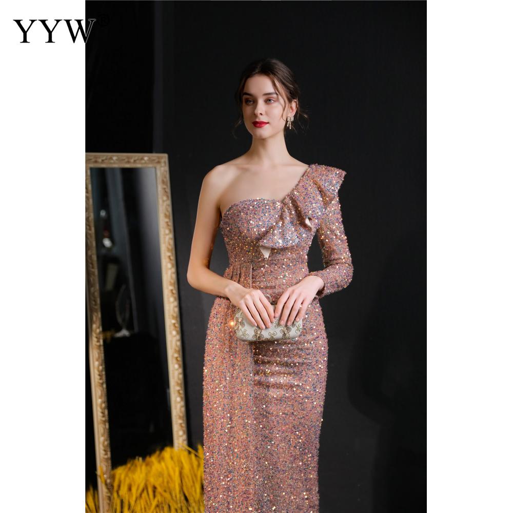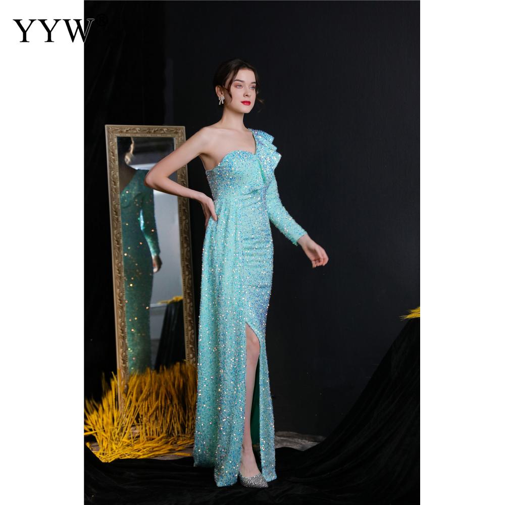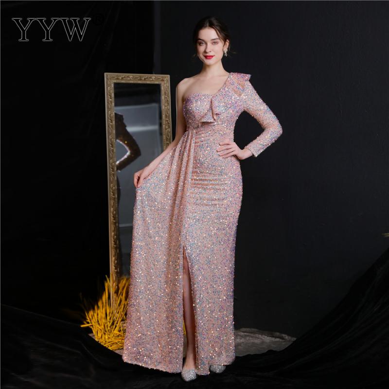 Polyester Long Evening Dress,creative jewelry, side slit & different size for choice & One Shoulder, Sequin, more colors for choice, PC