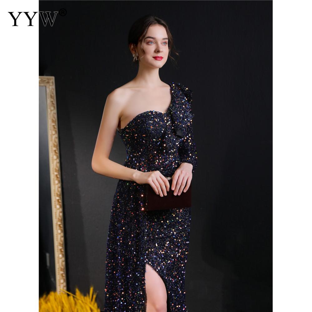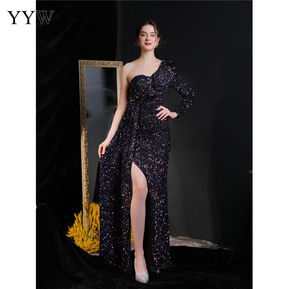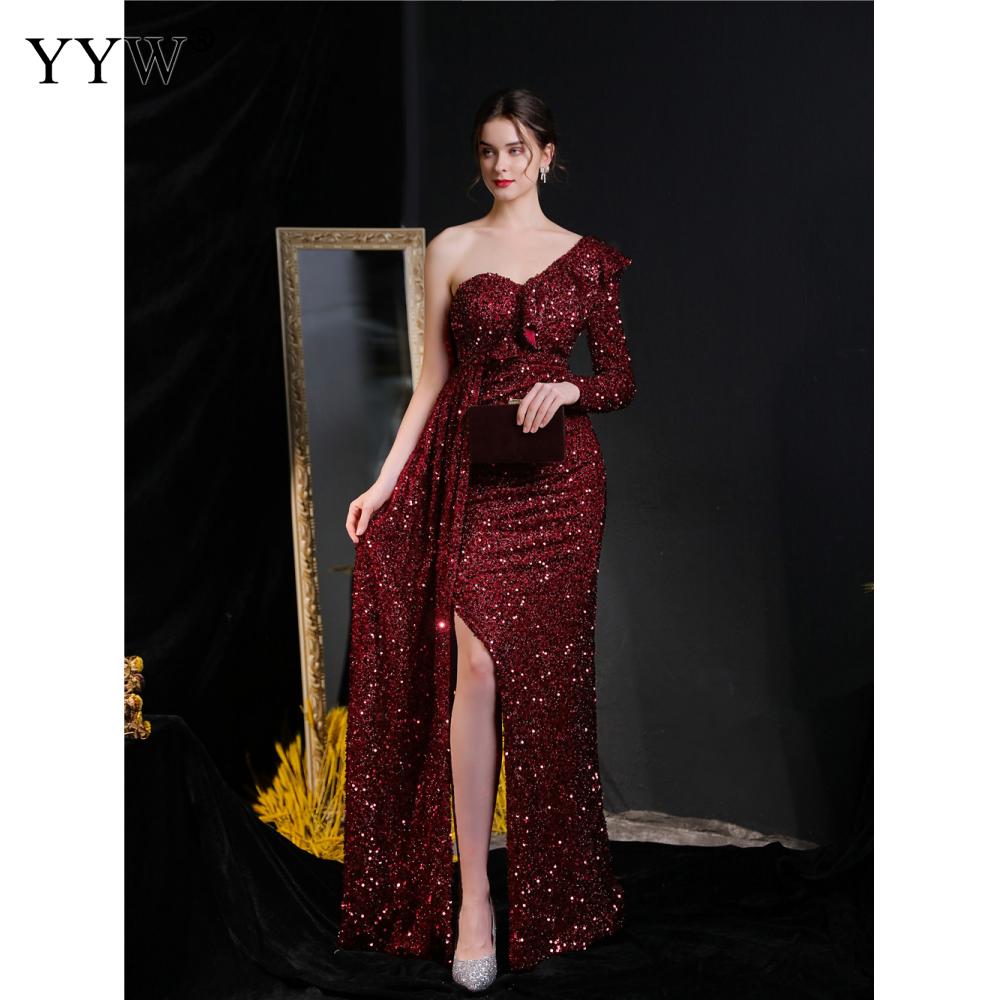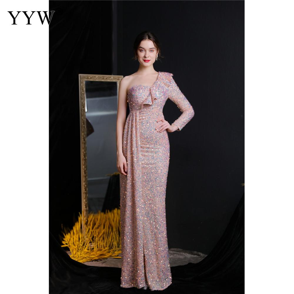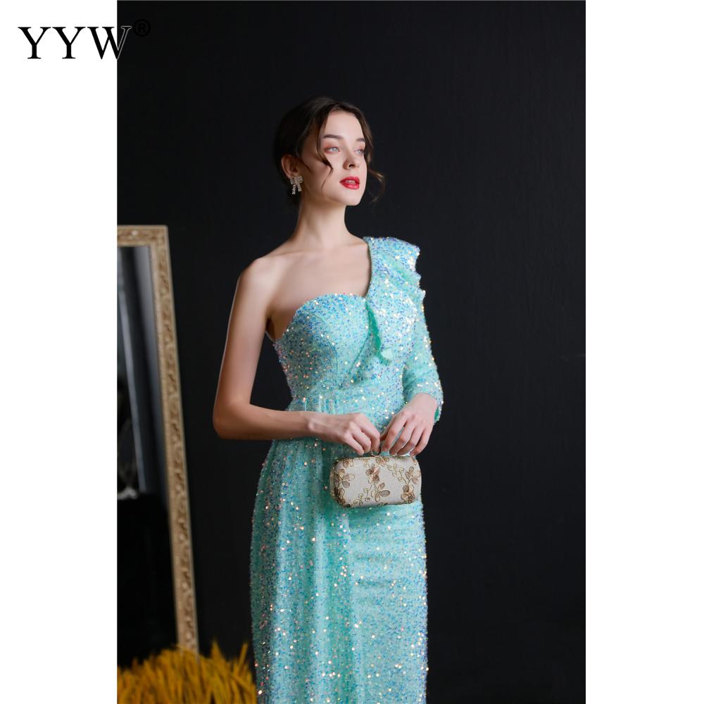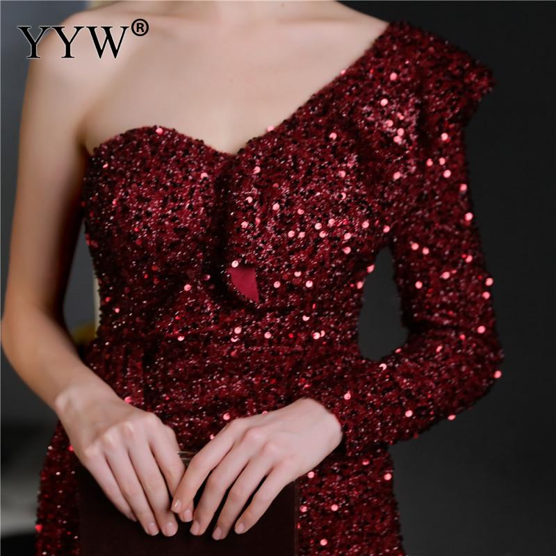 Polyester Long Evening Dress,creative jewelry, side slit & different size for choice & One Shoulder, Sequin, more colors for choice, PC