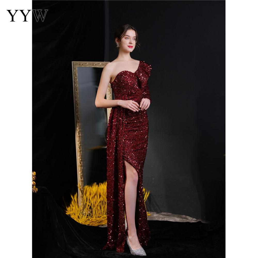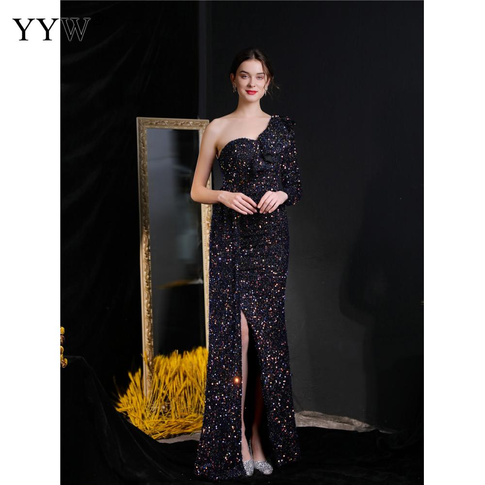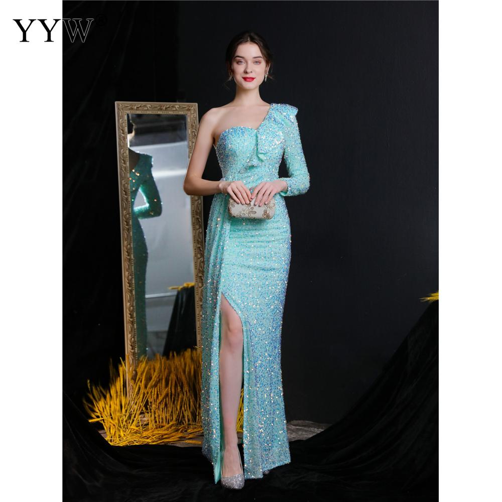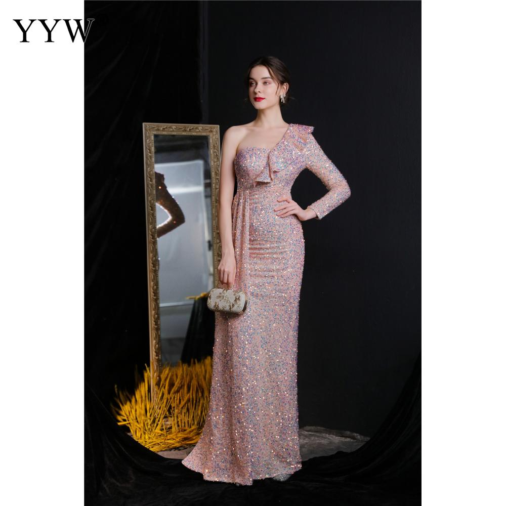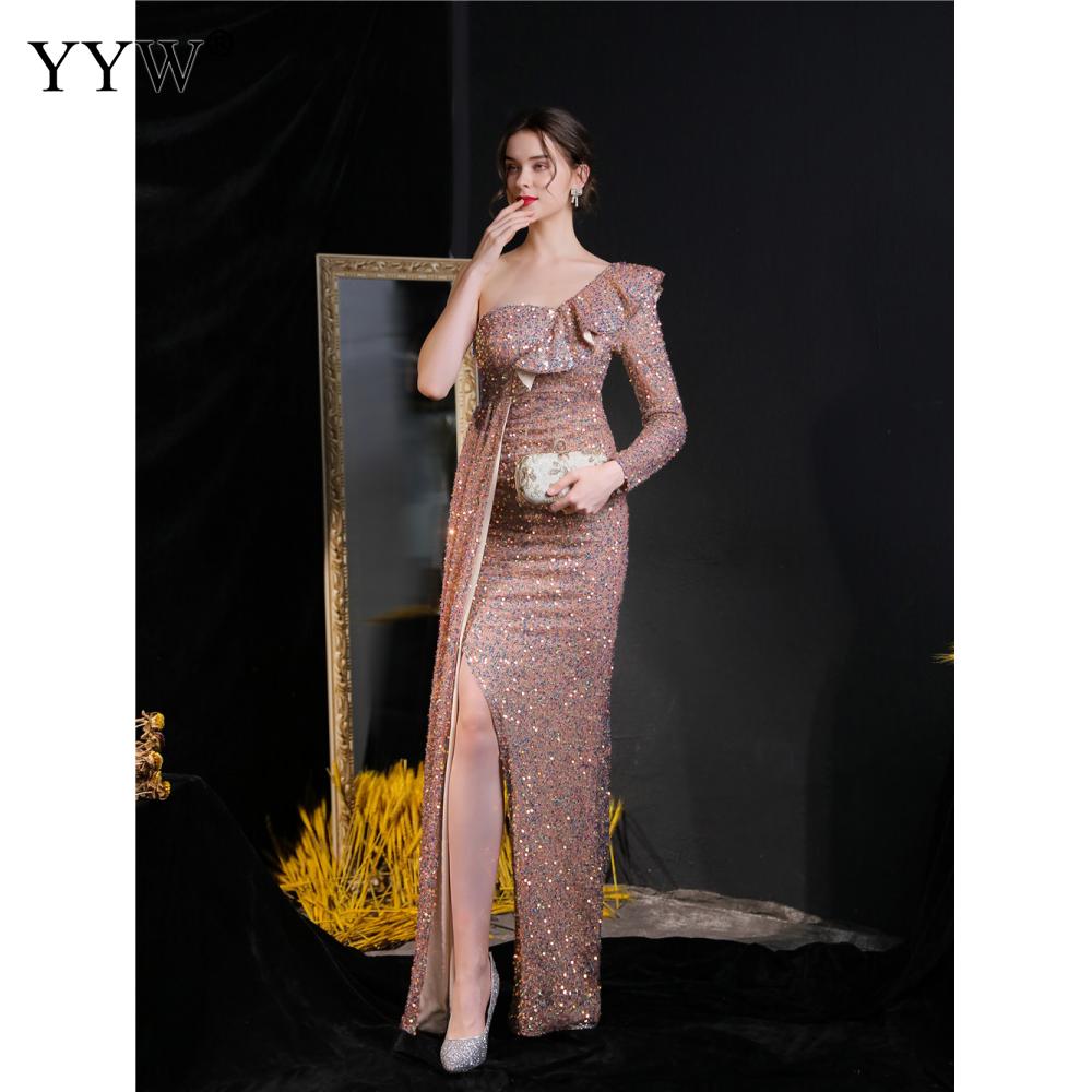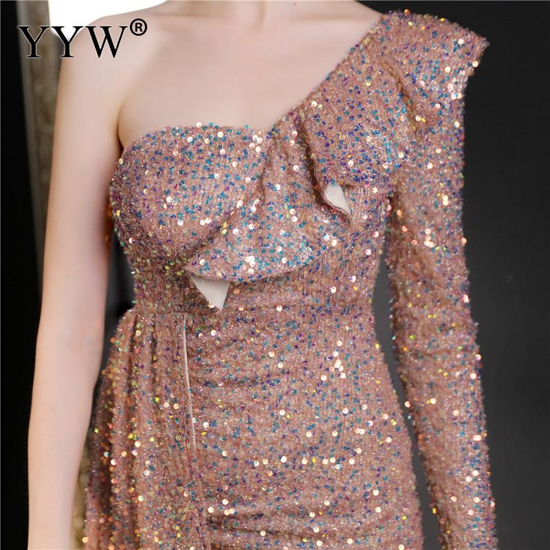 Polyester Long Evening Dress,creative jewelry, side slit & different size for choice & One Shoulder, Sequin, more colors for choice, PC