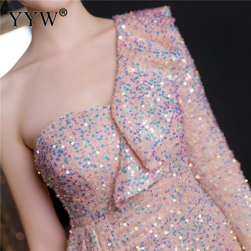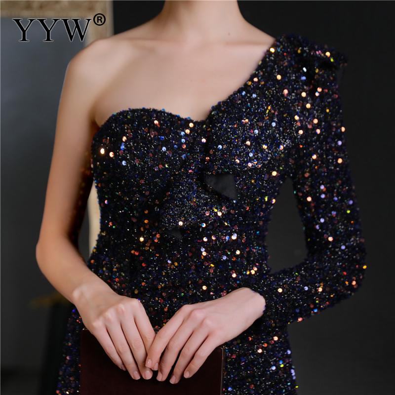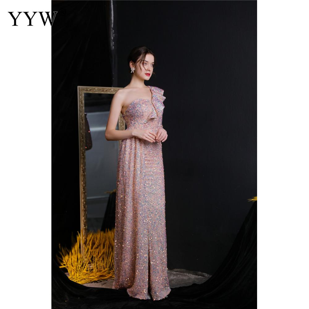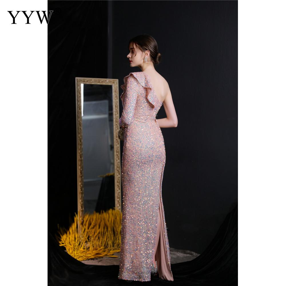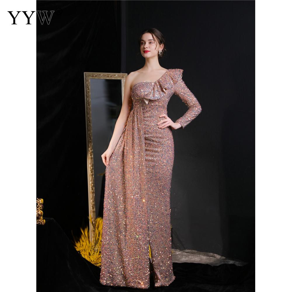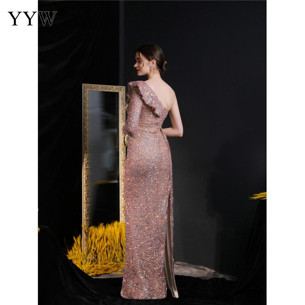 Polyester Long Evening Dress,creative jewelry, side slit & different size for choice & One Shoulder, Sequin, more colors for choice, PC