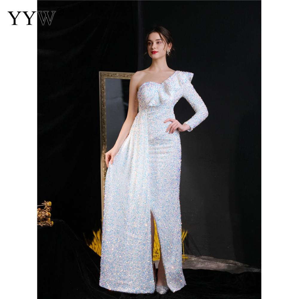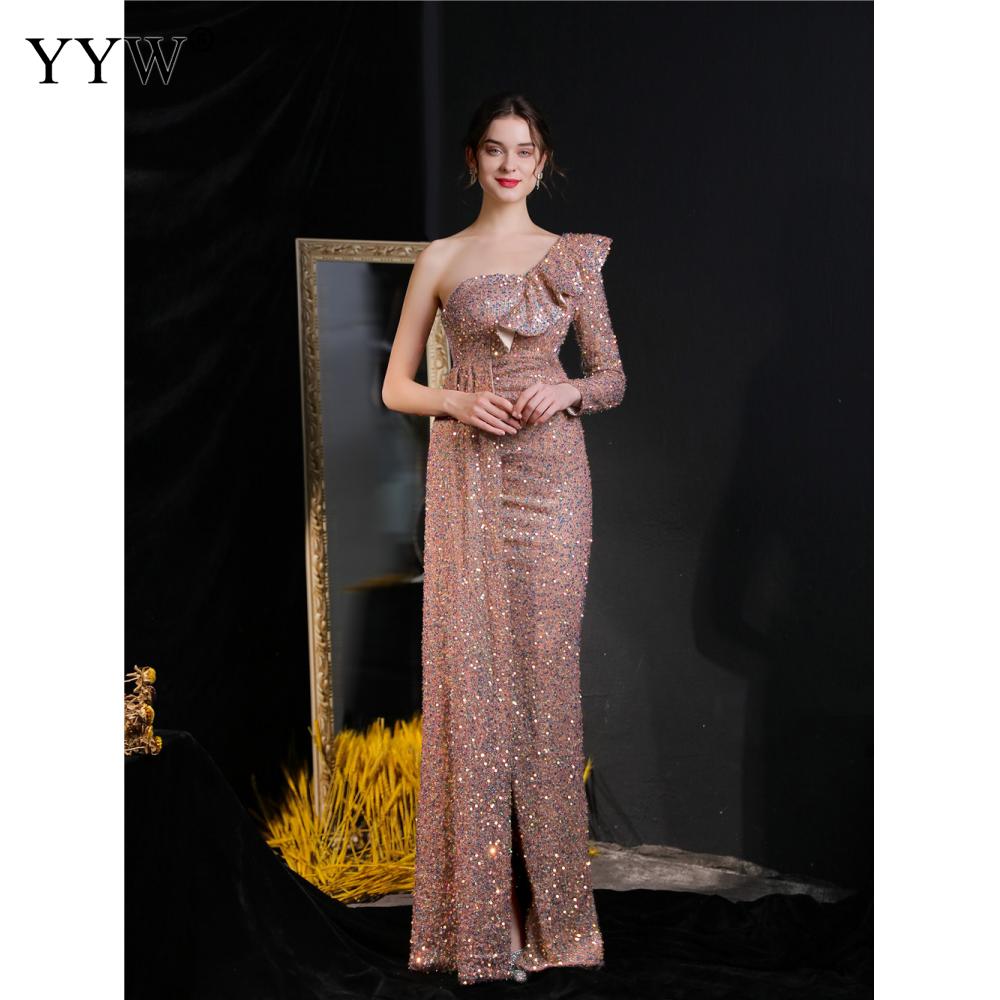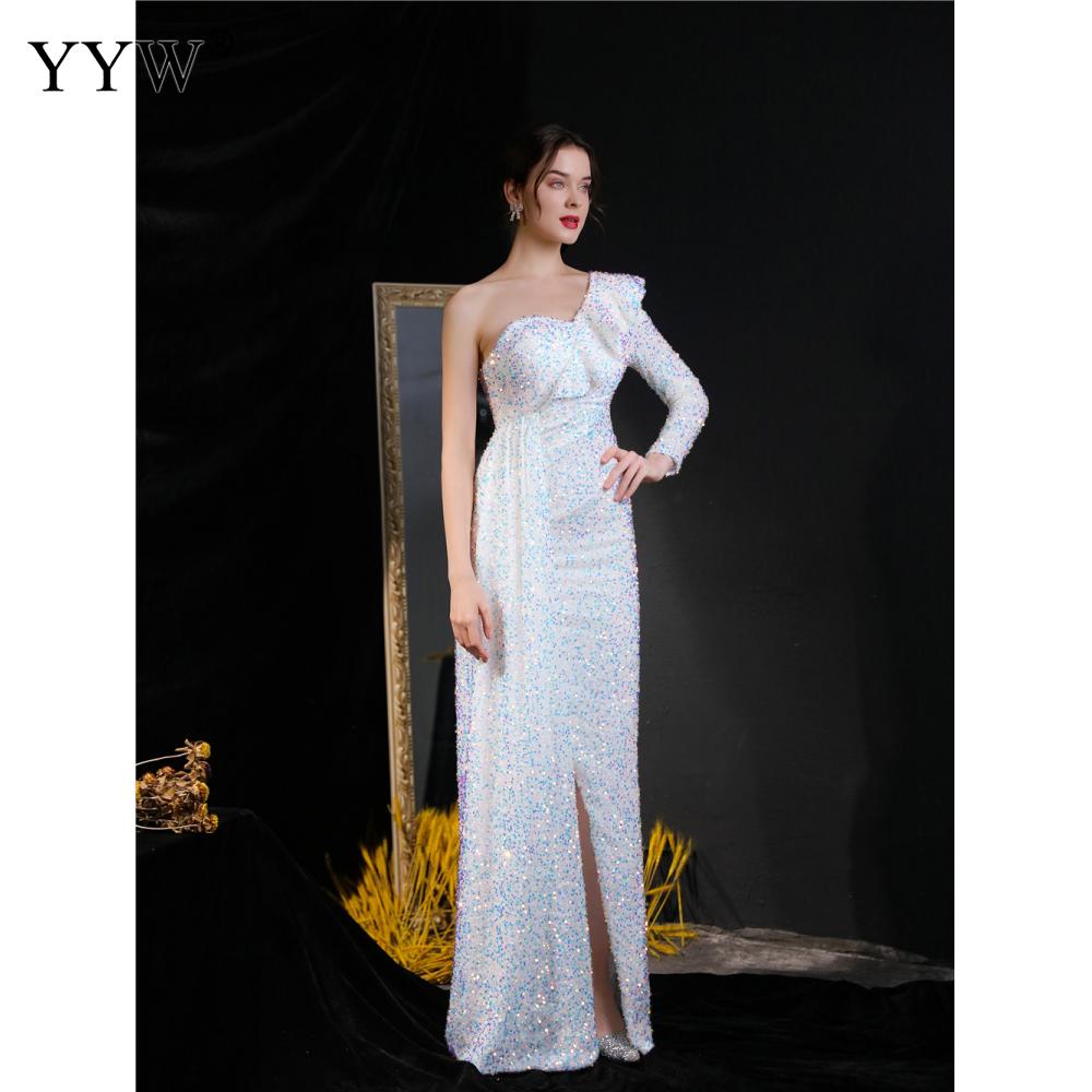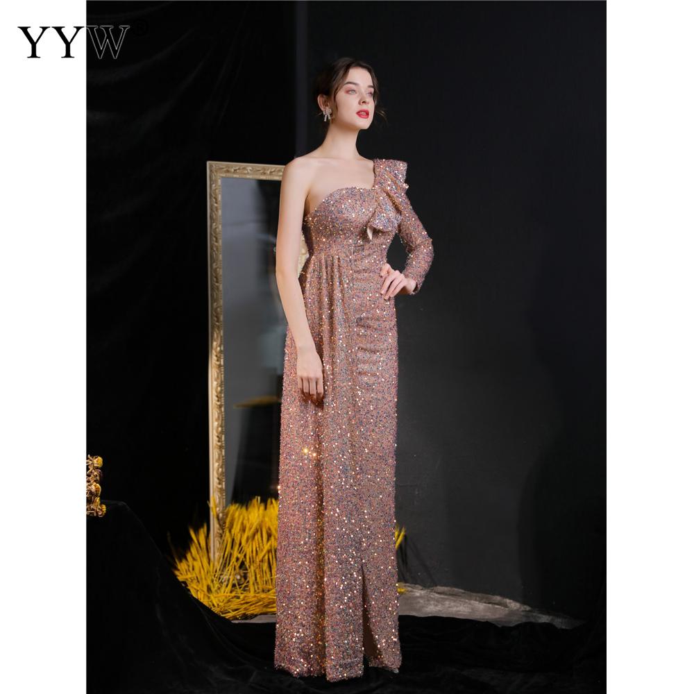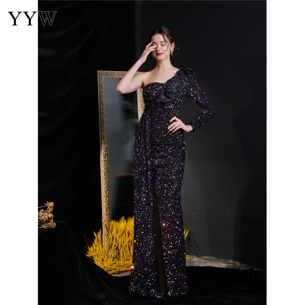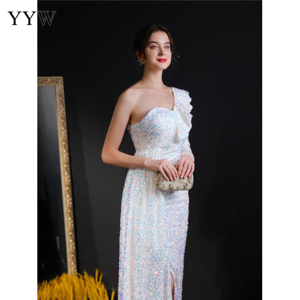 Polyester Long Evening Dress,creative jewelry, side slit & different size for choice & One Shoulder, Sequin, more colors for choice, PC