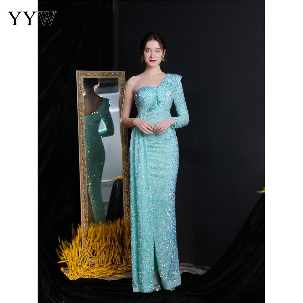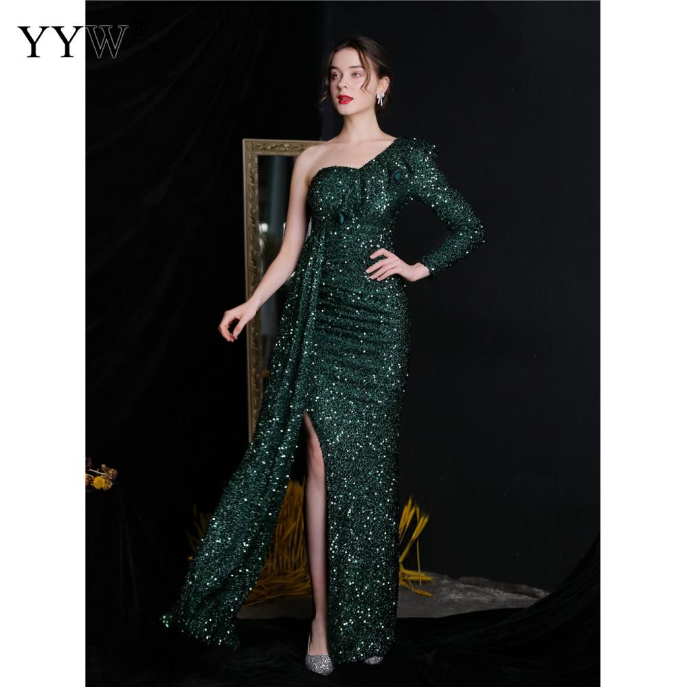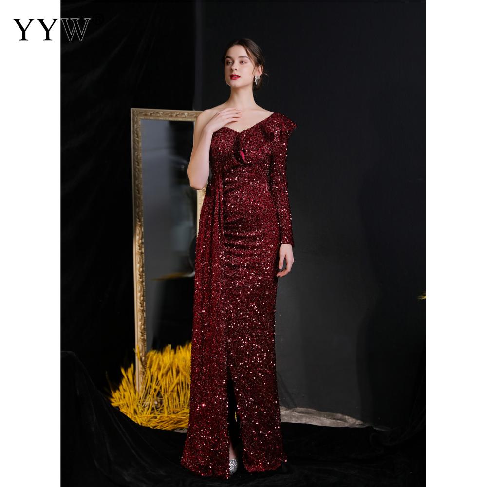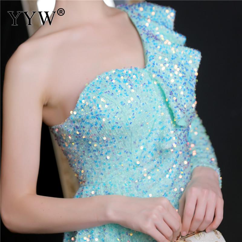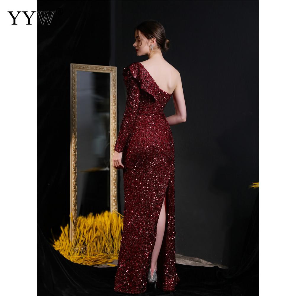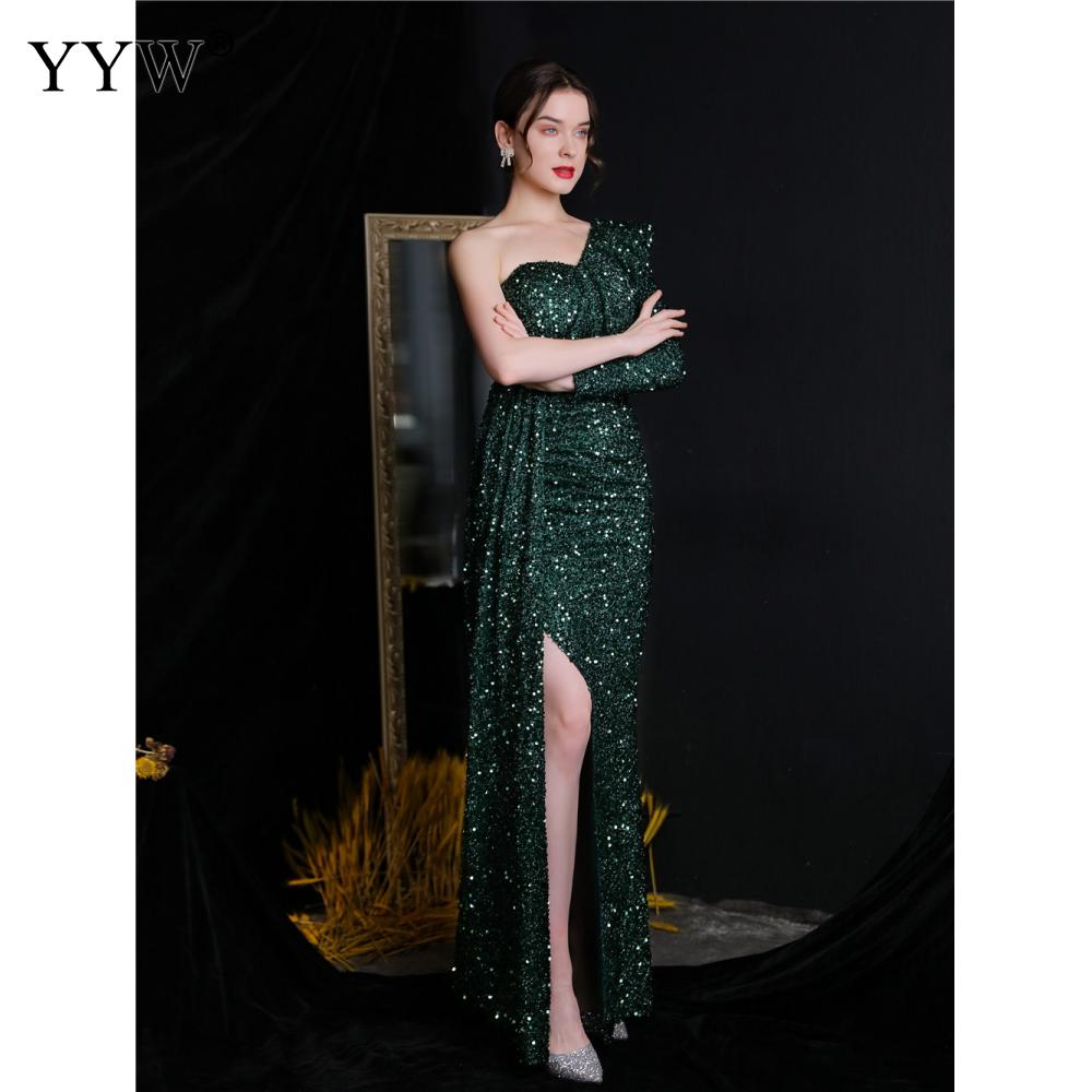 Polyester Long Evening Dress,creative jewelry, side slit & different size for choice & One Shoulder, Sequin, more colors for choice, PC