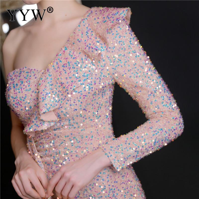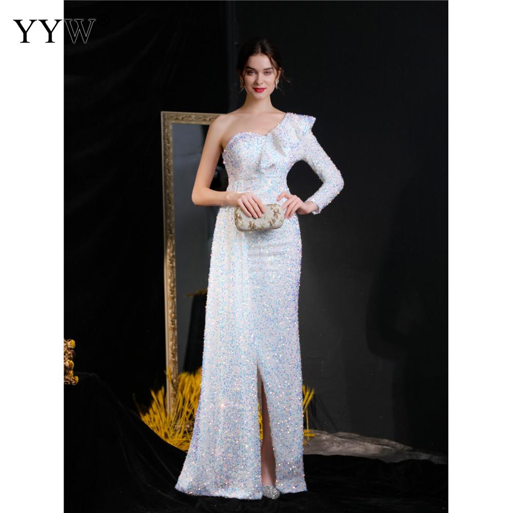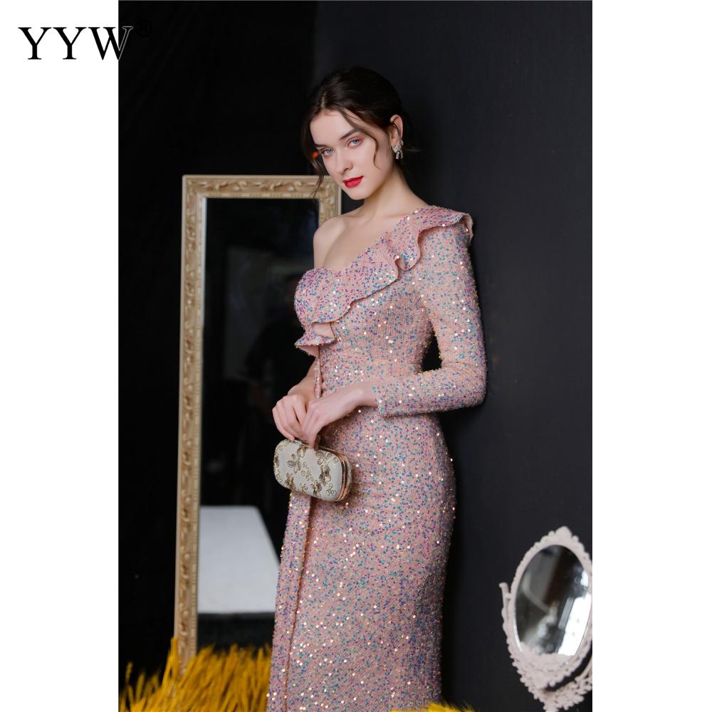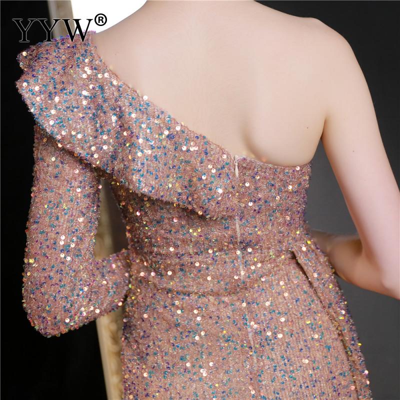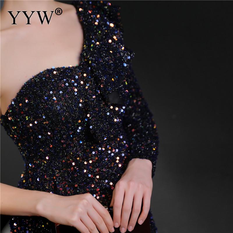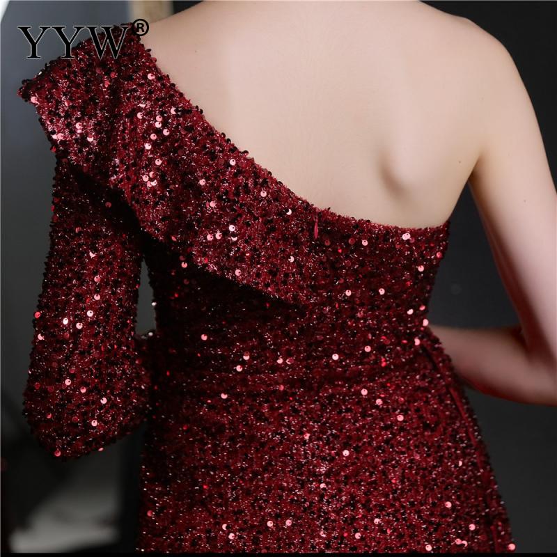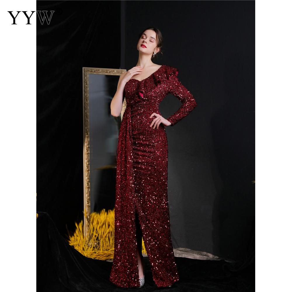 Polyester Long Evening Dress,creative jewelry, side slit & different size for choice & One Shoulder, Sequin, more colors for choice, PC