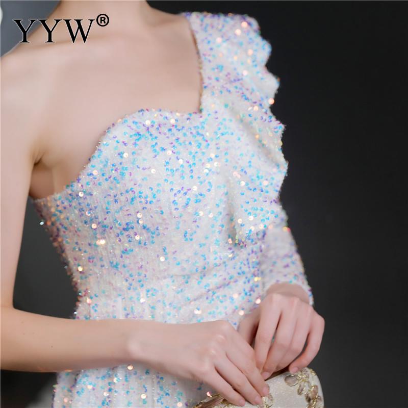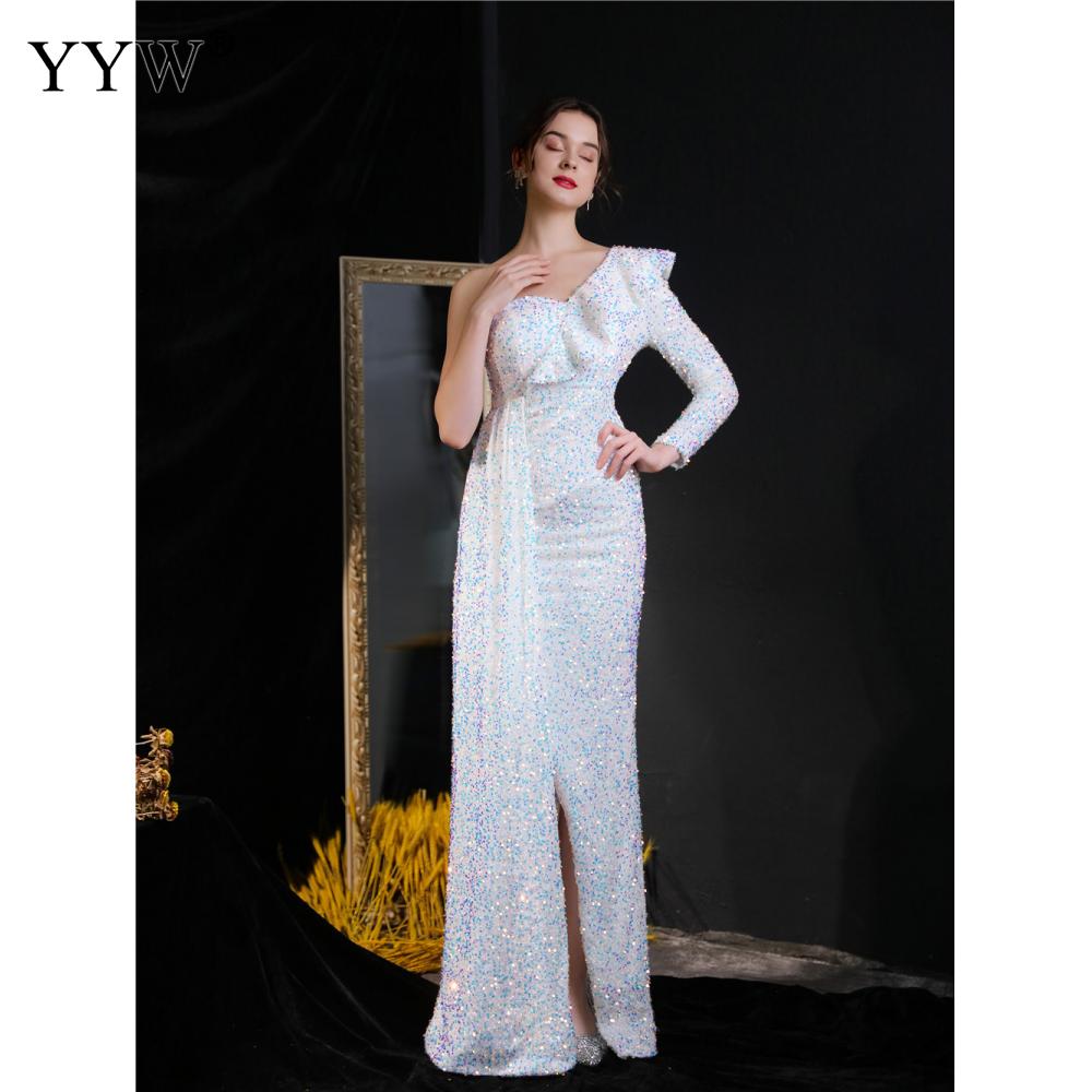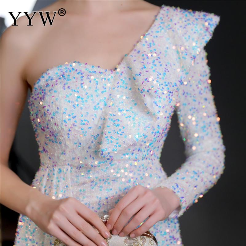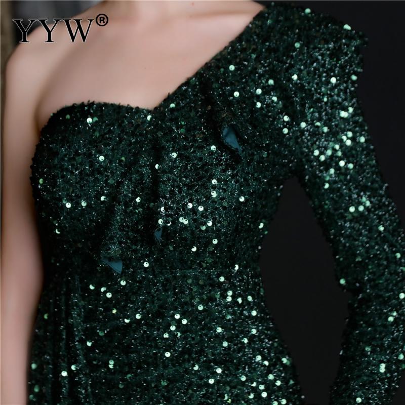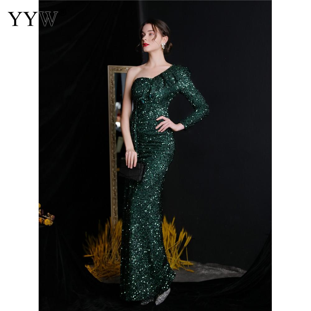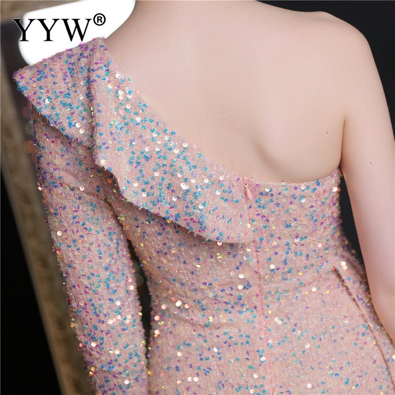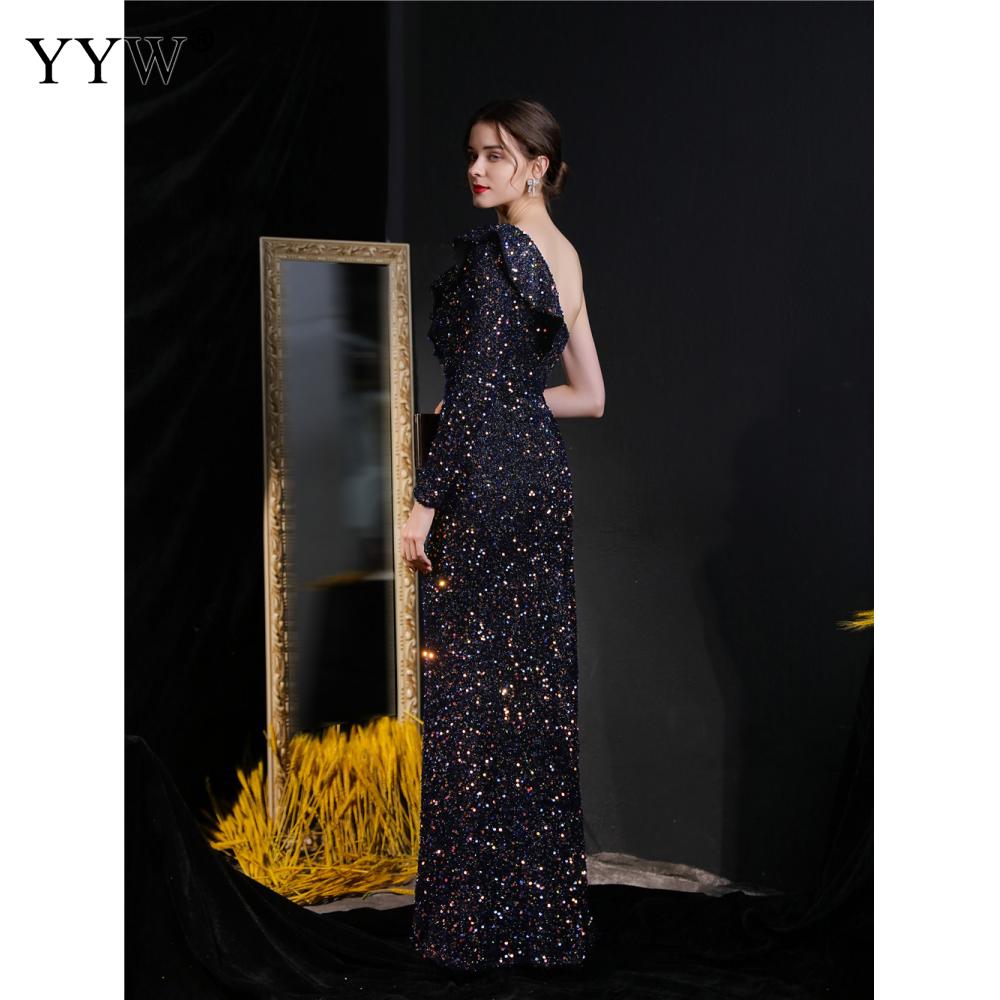 Polyester Long Evening Dress,creative jewelry, side slit & different size for choice & One Shoulder, Sequin, more colors for choice, PC