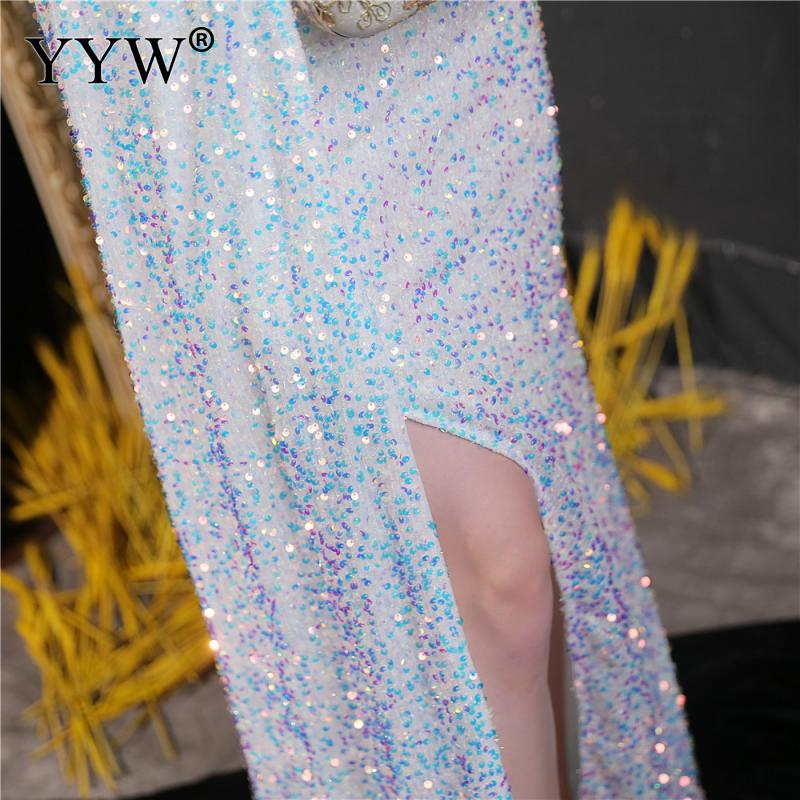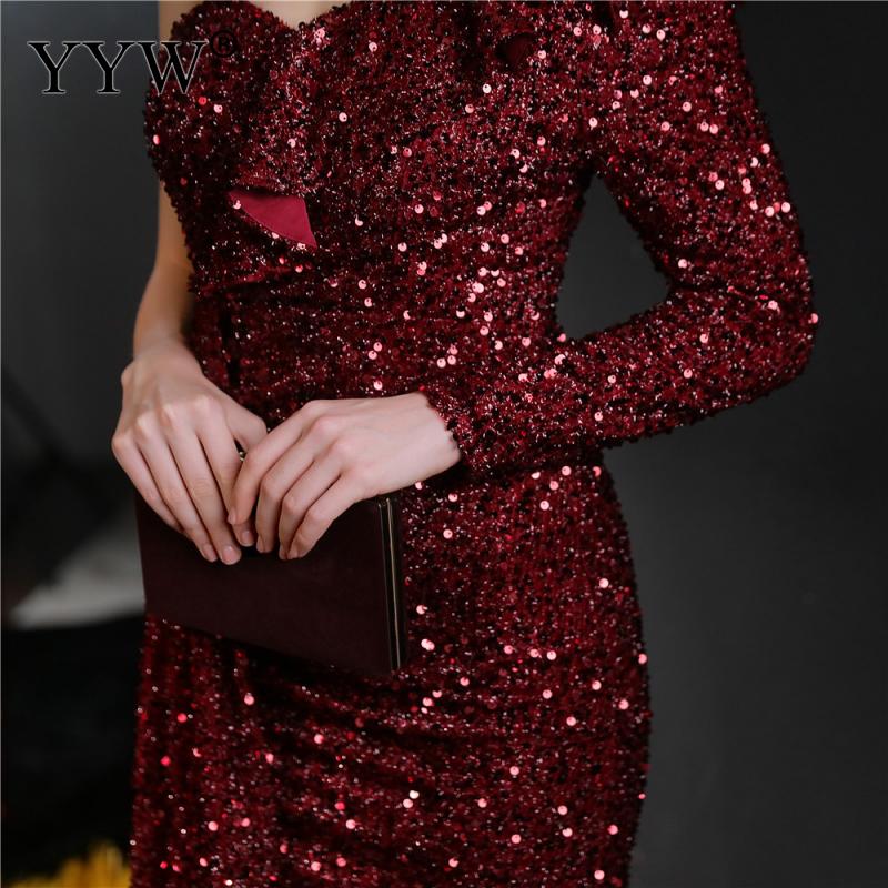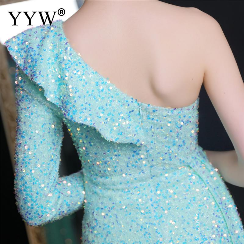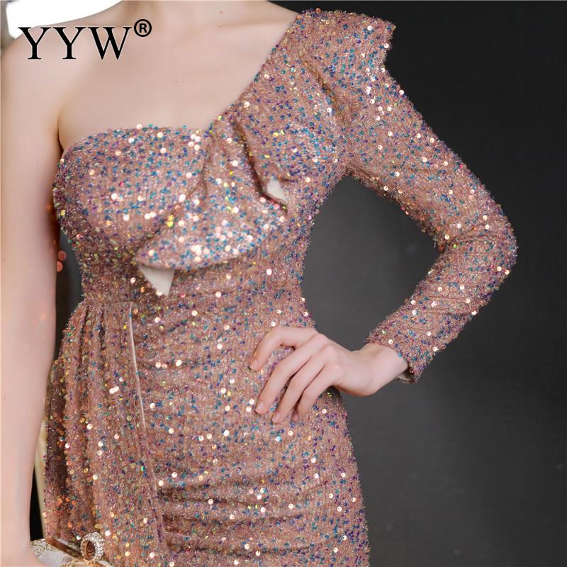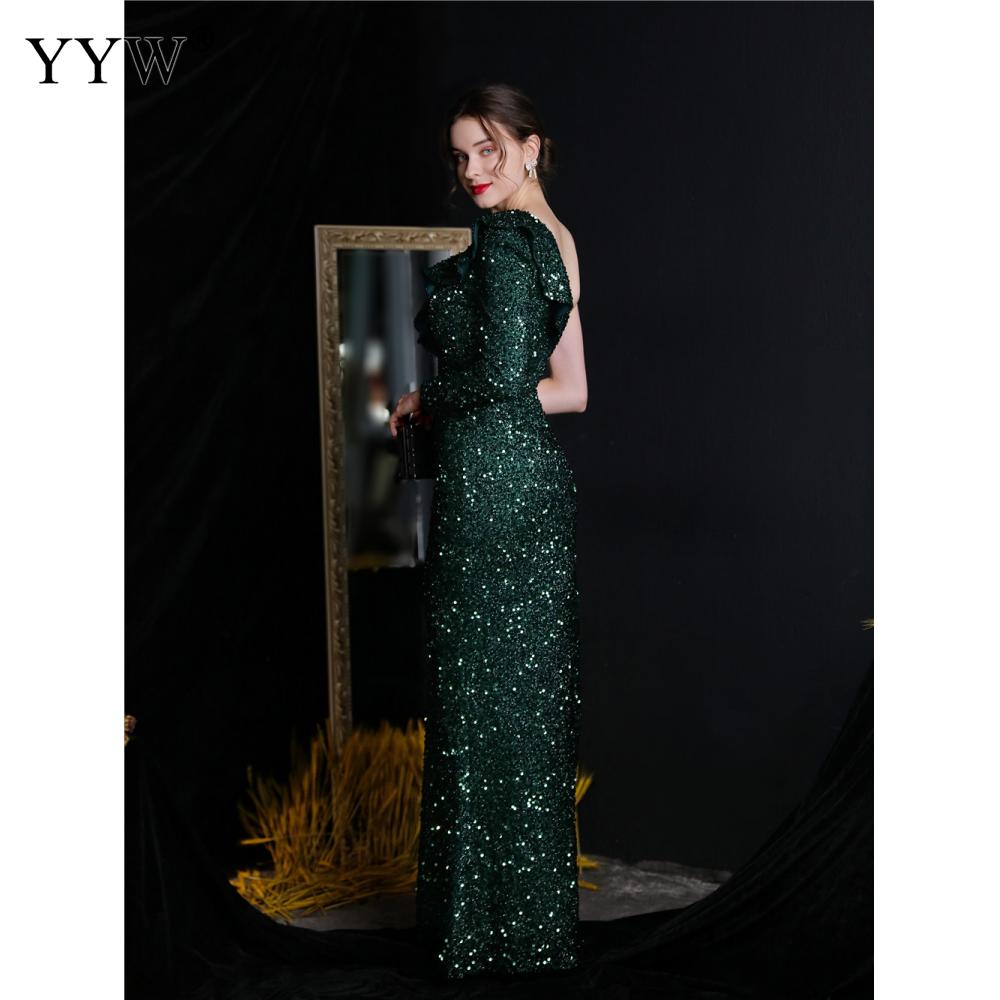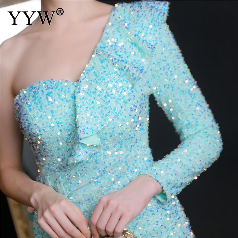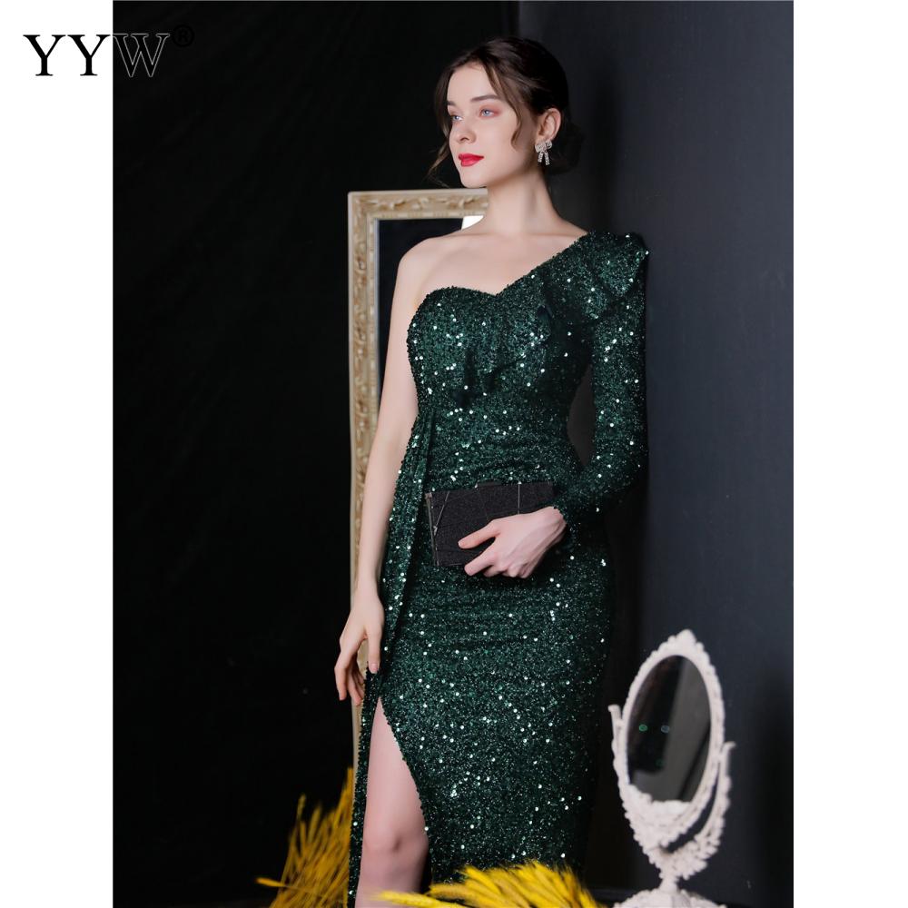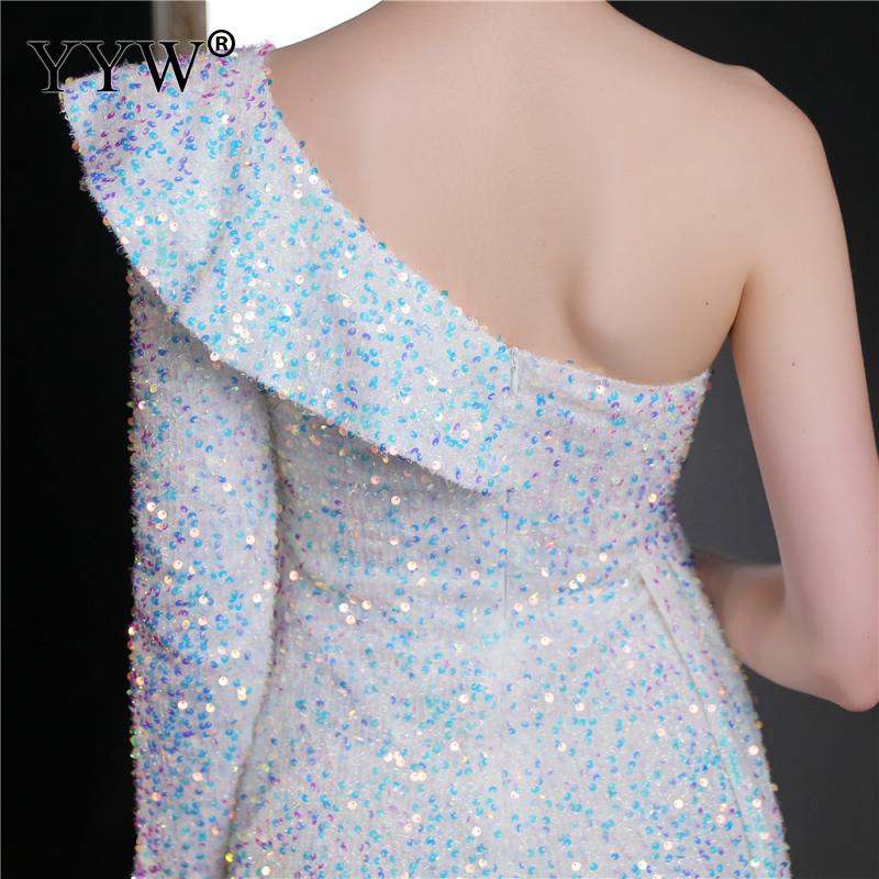Polyester Long Evening Dress,creative jewelry, side slit & different size for choice & One Shoulder, Sequin, more colors for choice, PC