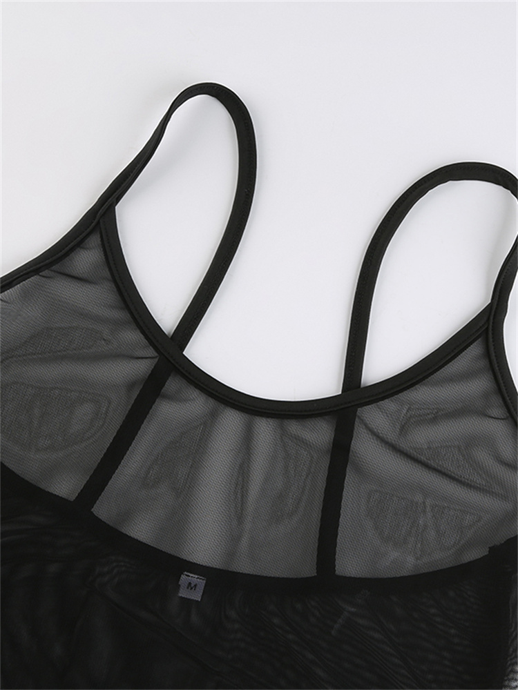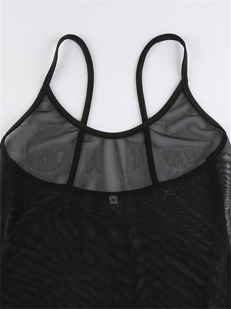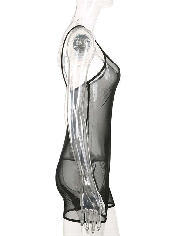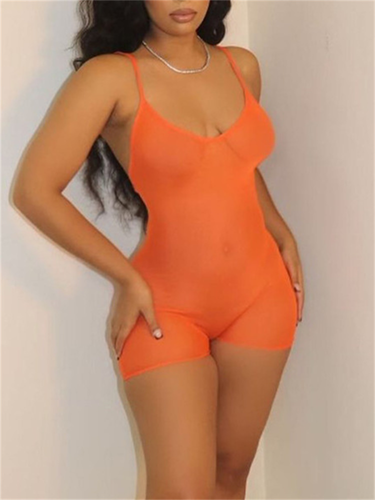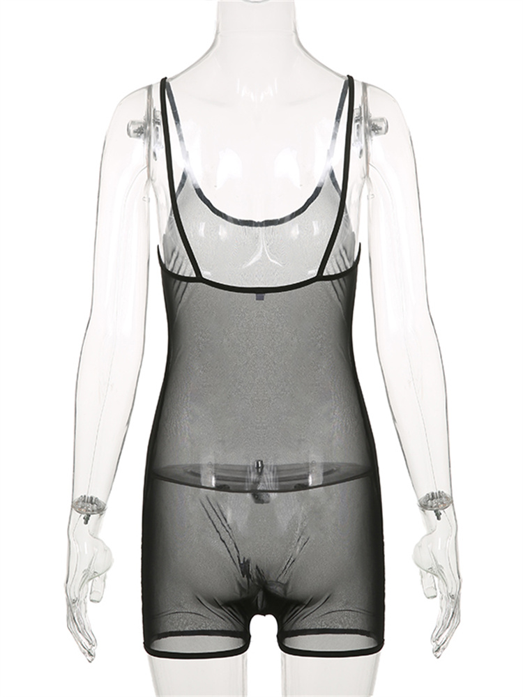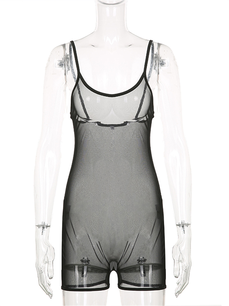 CHRONSTYLE Mesh Sheer See Through Playsuits Tops Women 2022 Sexy V-neck Sleeveless Strap Summer Party Clubwear Jumpsuits Rompers