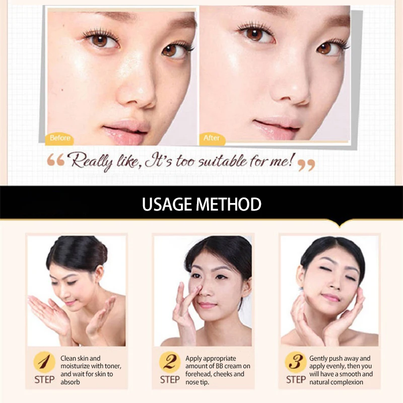 Эффективно закрывает пятна на лице, акне и т. д., равномерно закрывает поры и придает коже естественное сияние