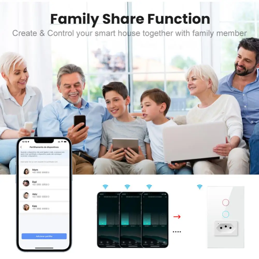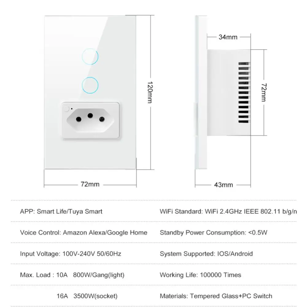 Wi-Fi Smart Tuya Бразилия 4X 2 светильник настенный выключатель розетка бразильская вилка розетка Brasil стеклянная панель интеллектуальная Alexa Google Home