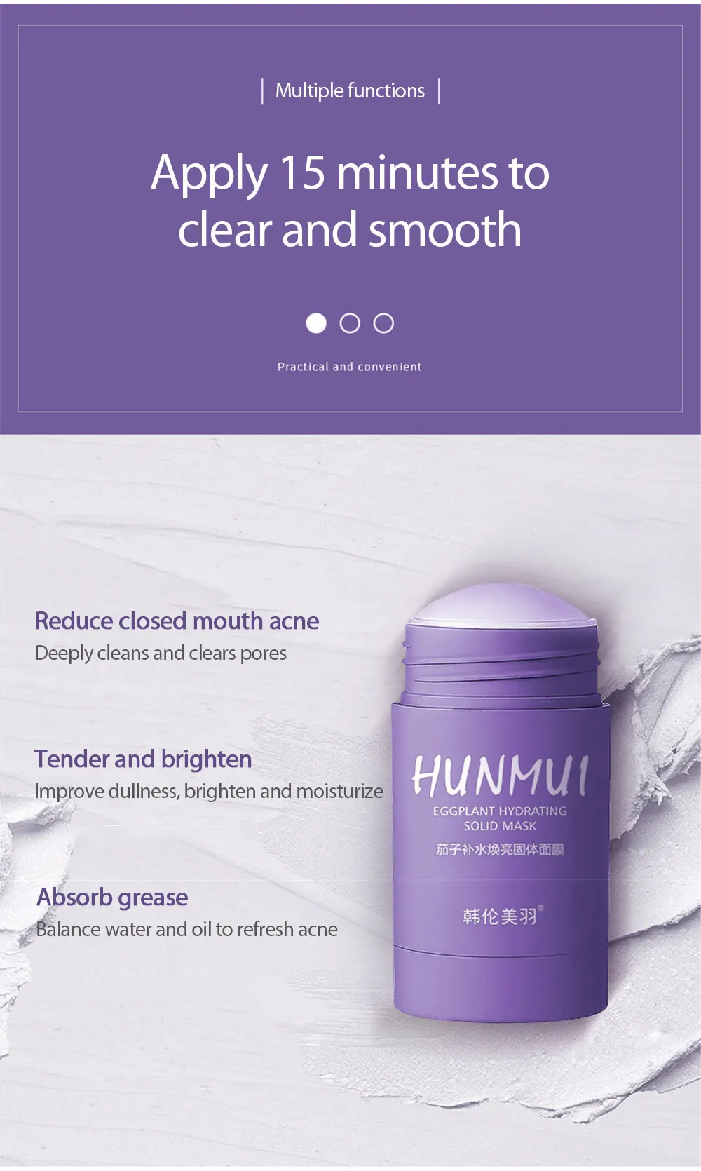 HUNMUI зеленый чай твердая маска Глубокая очистка грязевая маска палочка контроль масла против акне баклажаны маски очищающие палочки пластилина маска для кожи автомобиля