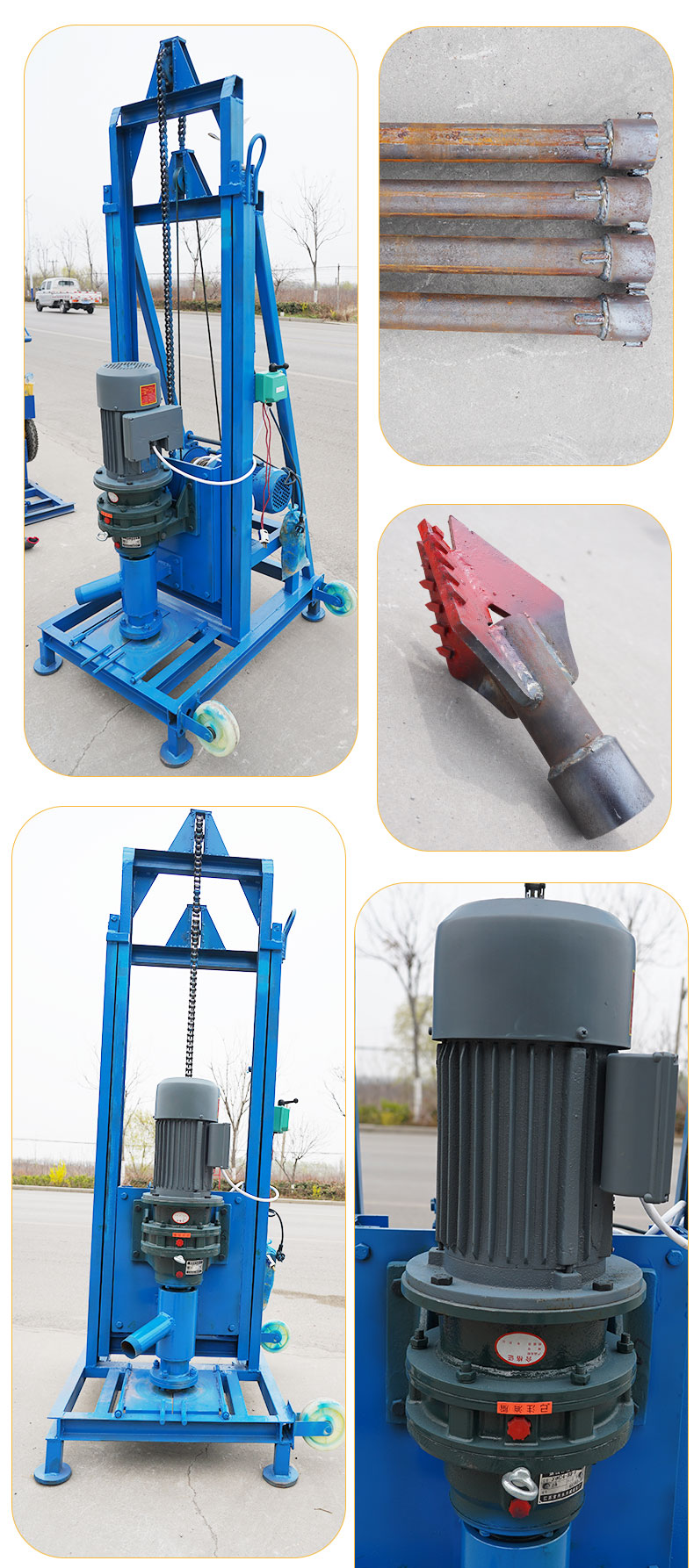 У нас есть полная и строгая производственная линия для бурения скважин на воду, которая может быть настроена и массового производства на фабрике, и у нас есть профессиональная команда послепродажного обслуживания, ваша покупка и использование будут лучшей гарантией;