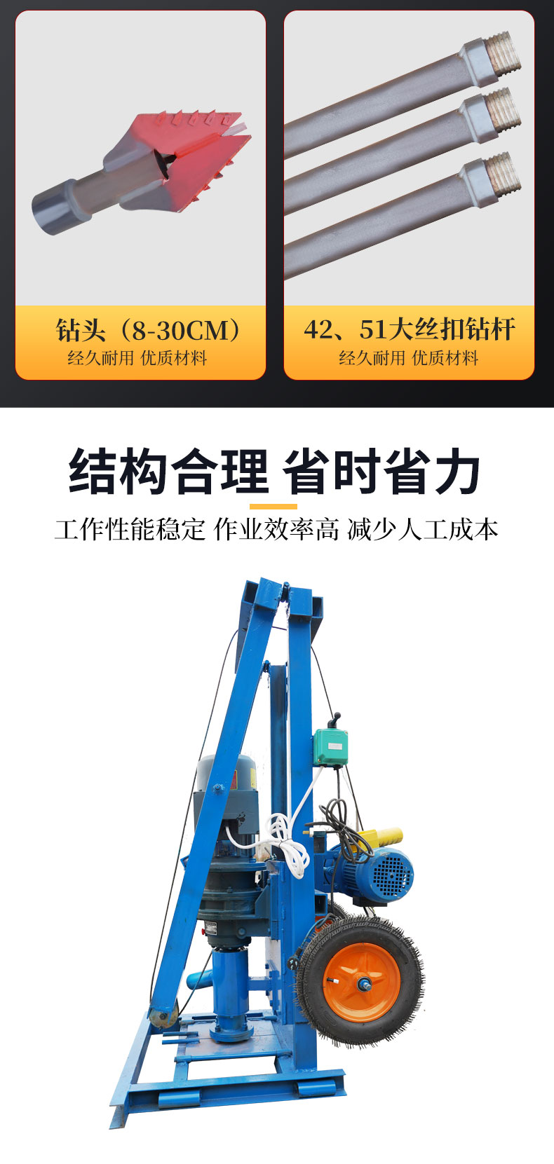 6. Высокая эффективность, скорость бурения может достигать 20 метров глубины в час в простой области.