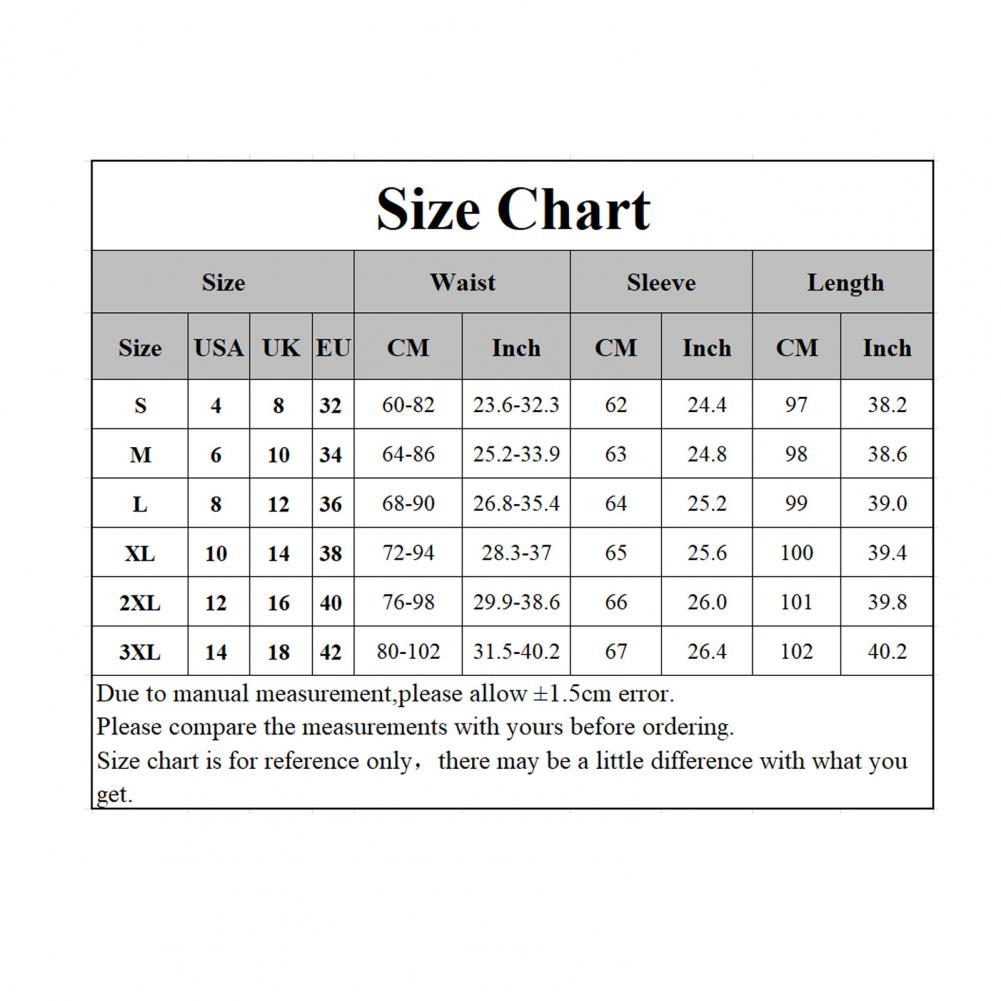 Размер: 3XL, талия: 80 см-102 см/31,5 "-40,2", рукав: 67 см/26,4 ", Длина: 102 см/40,2" (прибл.)