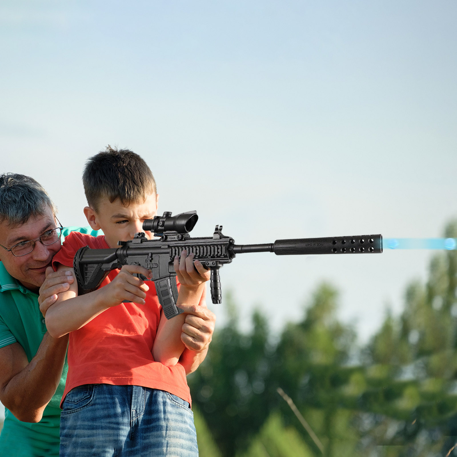 Снимайте до 12 гелевых шаров в секунду с диапазоном около 15 м. И мы также