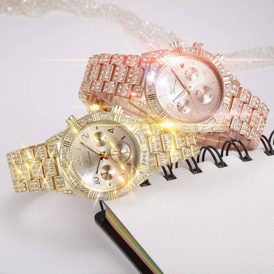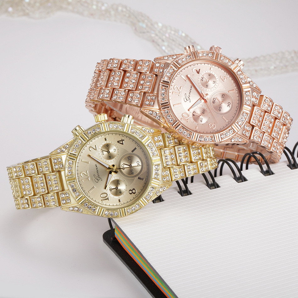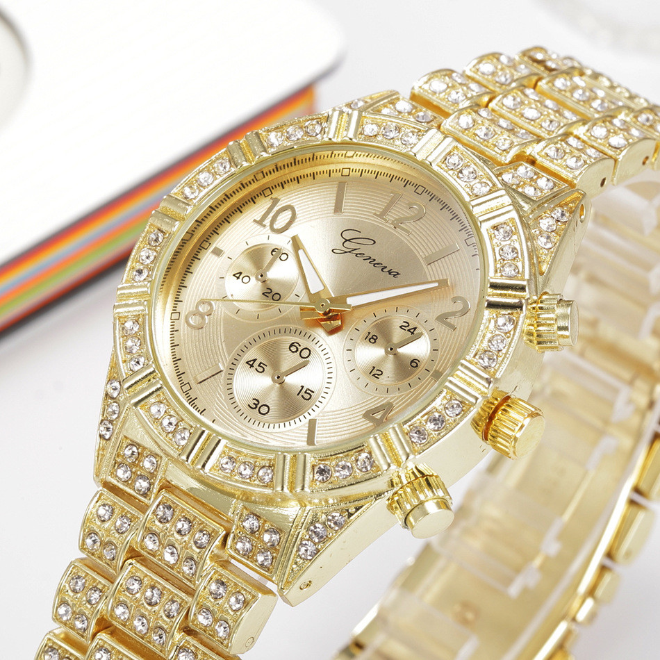 Модная Женевская нержавеющая сталь роскошные женские Кварцевые аналоговые наручные часы с кристаллами