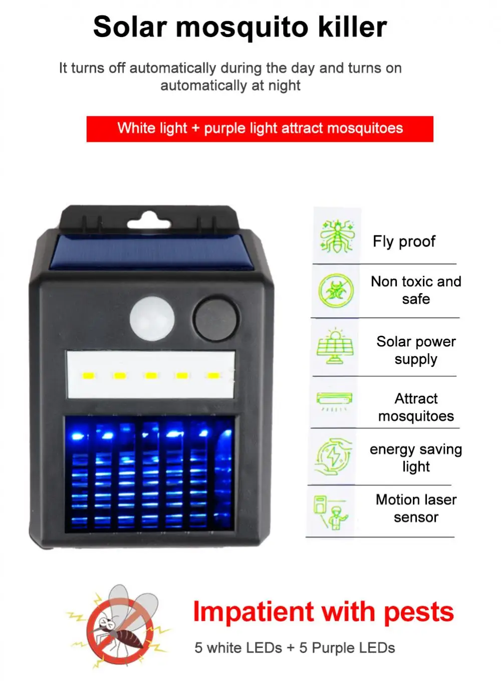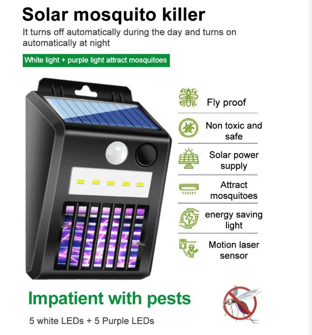 Электромоскитная лампа на солнечной энергии, защита от дождя, защита от комаров, убивает мух, насекомых