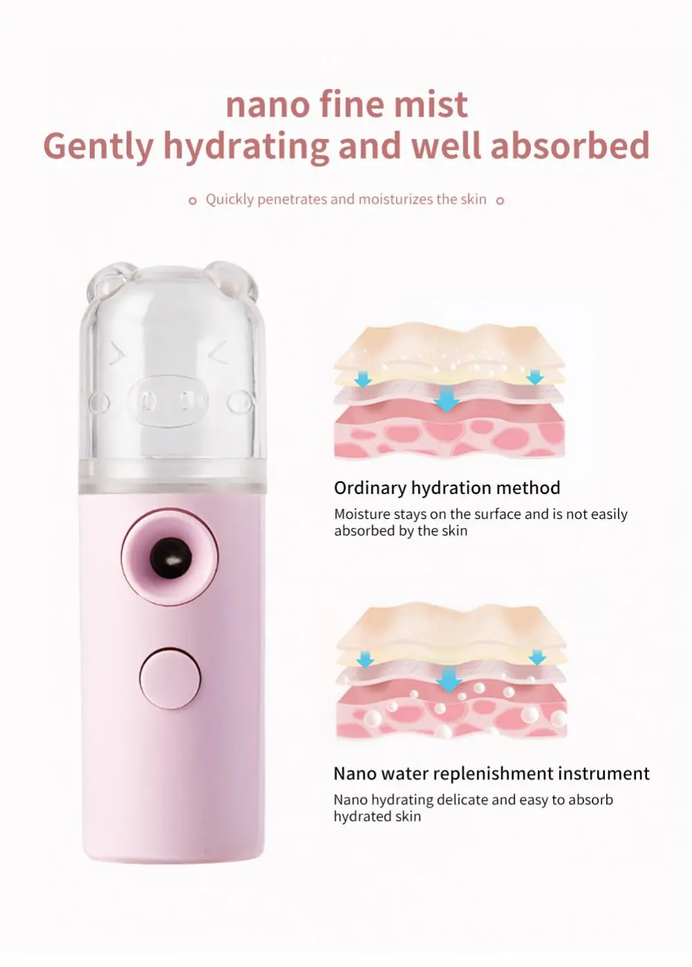 Хит! Мини USB Перезаряжаемый увлажнитель спрей милый поросенок портативный распылитель спиртовой холодный спрей увлажняющий счетчик для пополнения воды