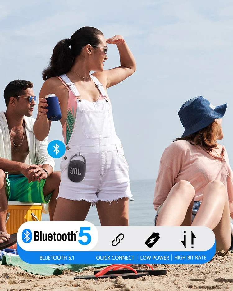 Звук JBL Pro обеспечивает удивительно насыщенные аудио и ударопрочные басы в компактном размере зажима 4.