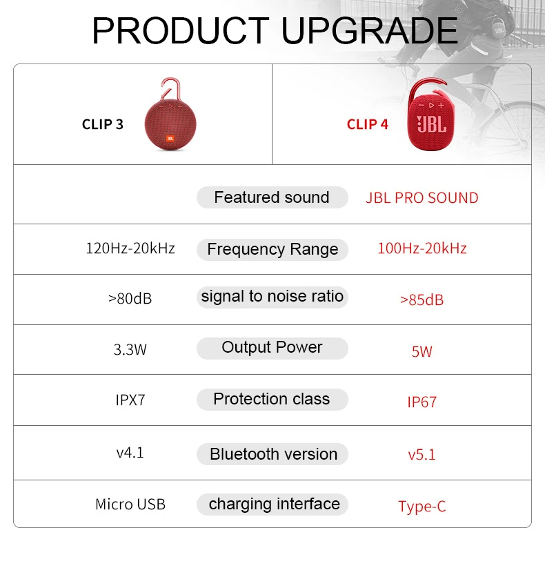 Ультра-портативный дизайн JBL Clip 4 пары идеально сочетаются с новейшими стилями, а его красочные ткани и выразительные детали делают его таким же хорошим, как и кажется.