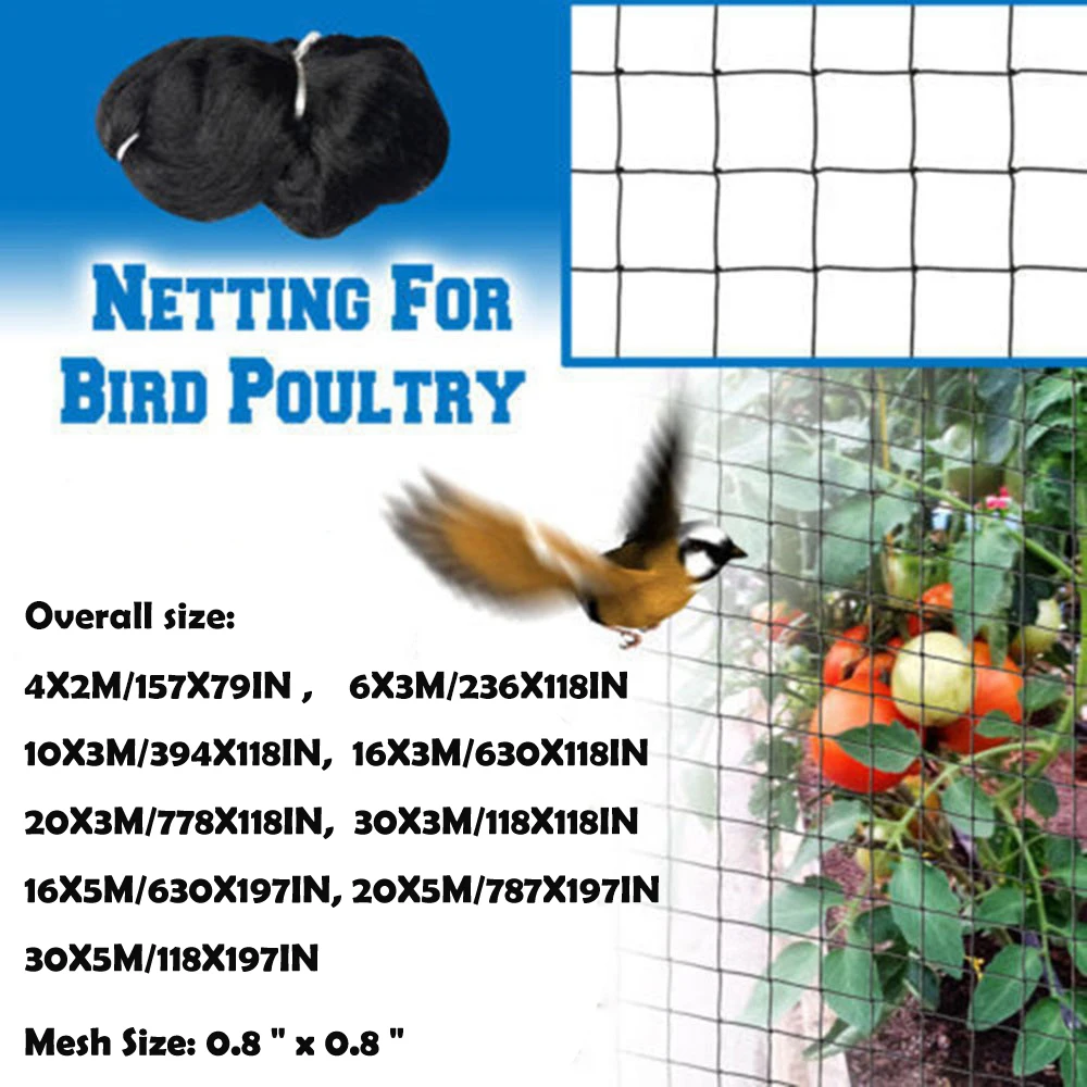 Эта птичья сеть подходит для выращивания любого типа птицы, сеть для пруда, садовый барьер; Защищает ваши фрукты/дерево/Урожай от вторжений птиц, таких как воробья и ворон. В то же время вам не нужно беспокоиться о том, что ястреб захватит вашу курицу