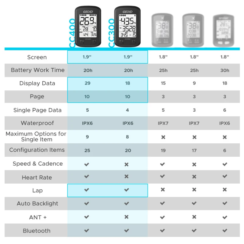 3. 【Better】по сравнению с другими брендами в том же ценовом диапазоне, CC400 & CC300 поддерживает большинство элементов данных и первый велосипедный компьютер, который поддерживает функцию подсчета круга