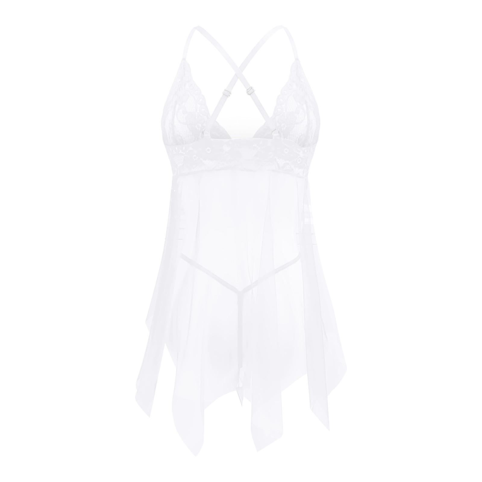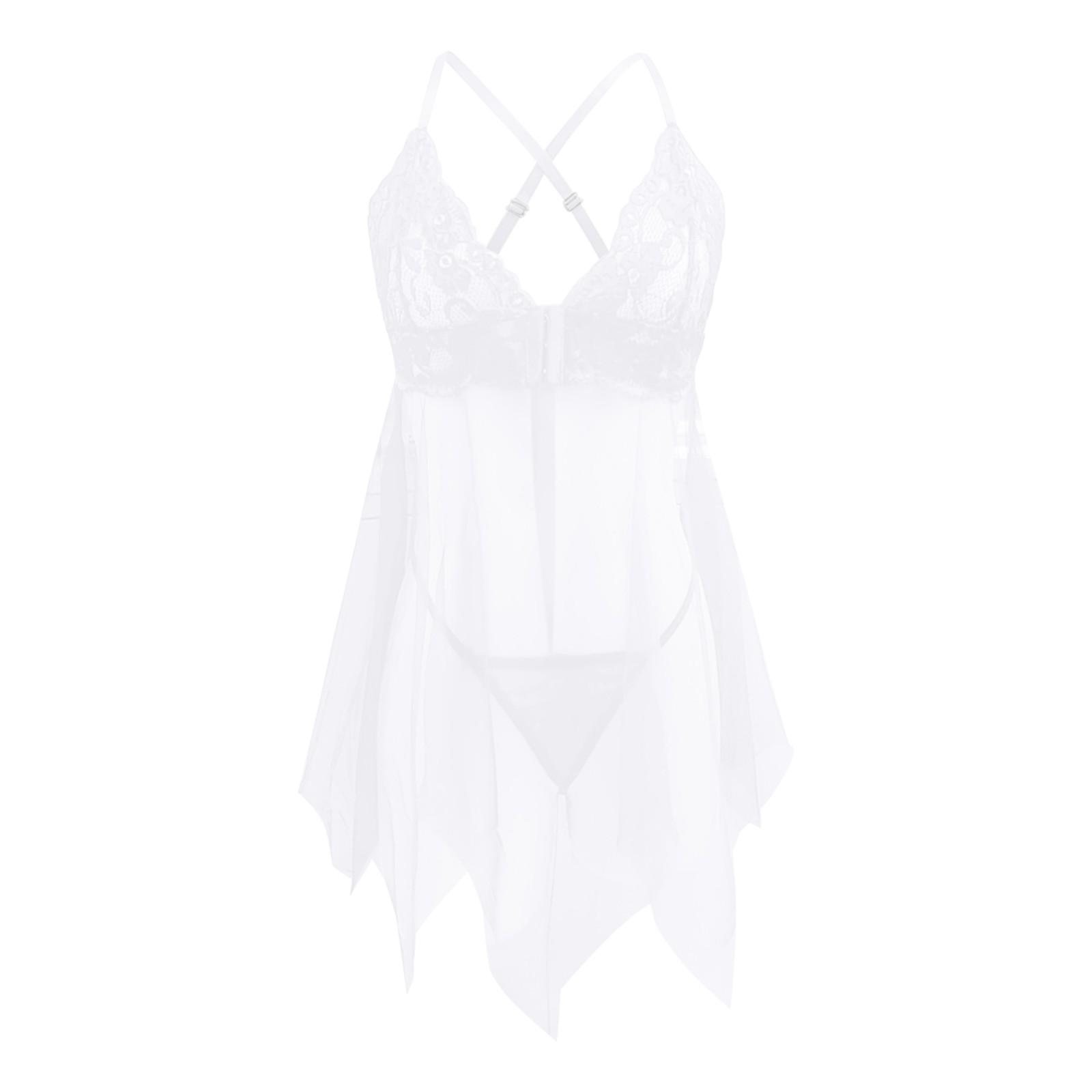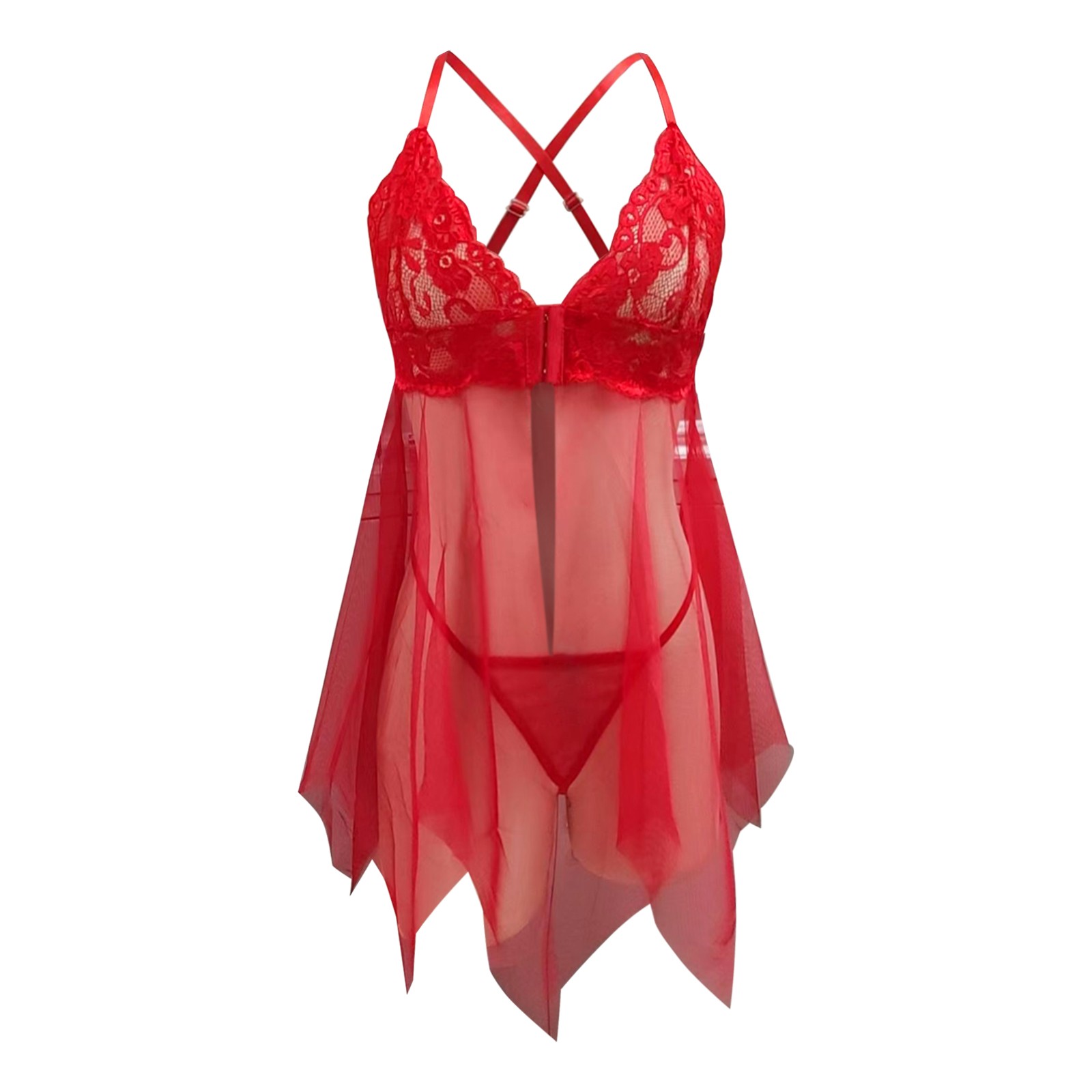 Стиль идеальное сочетание кокетливого и сексуального, прозрачная сетчатая и цветочная кружевная открытая спереди Babydoll разработан, чтобы получить сердца гонки.