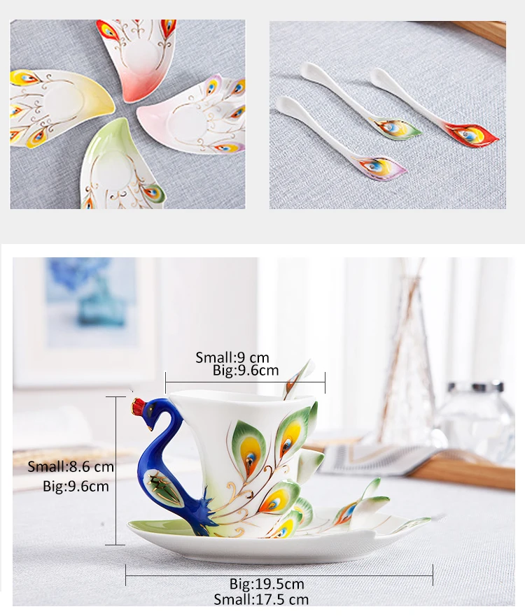 Креативная 3D Ручная работа фарфоровая Эмаль Павлин кофейная чашка набор с блюдцем и ложкой подарок керамическая кружка для чая и воды блюдо подарок