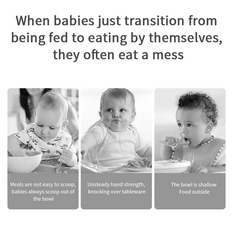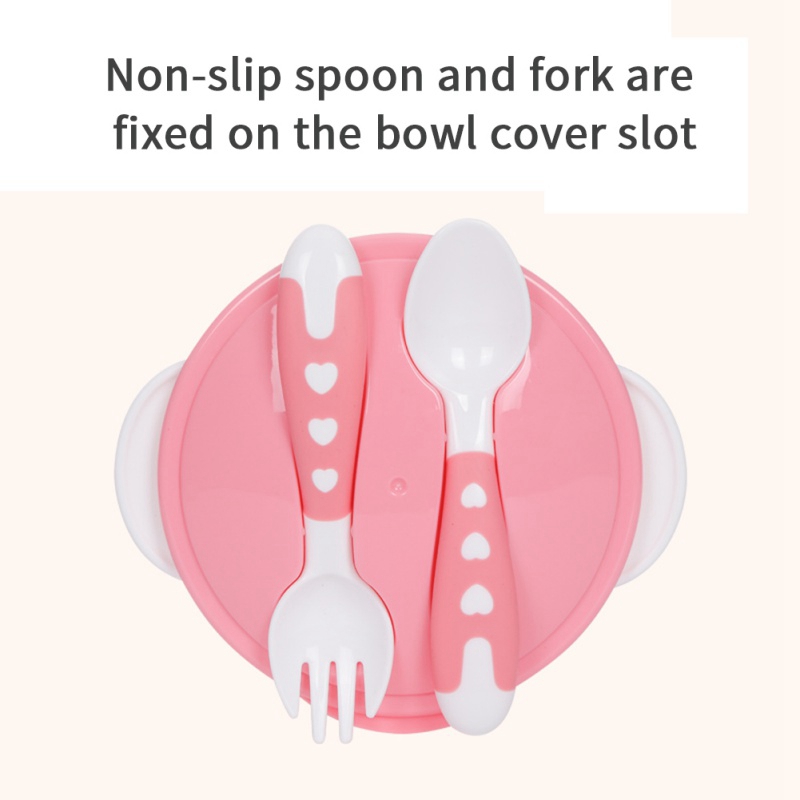 Корпус чаши оснащен нескользящими ручками. Ложка и вилка округлены, чтобы убедиться, что ребенок не поцарапается, и ребенку удобно питаться самостоятельно.