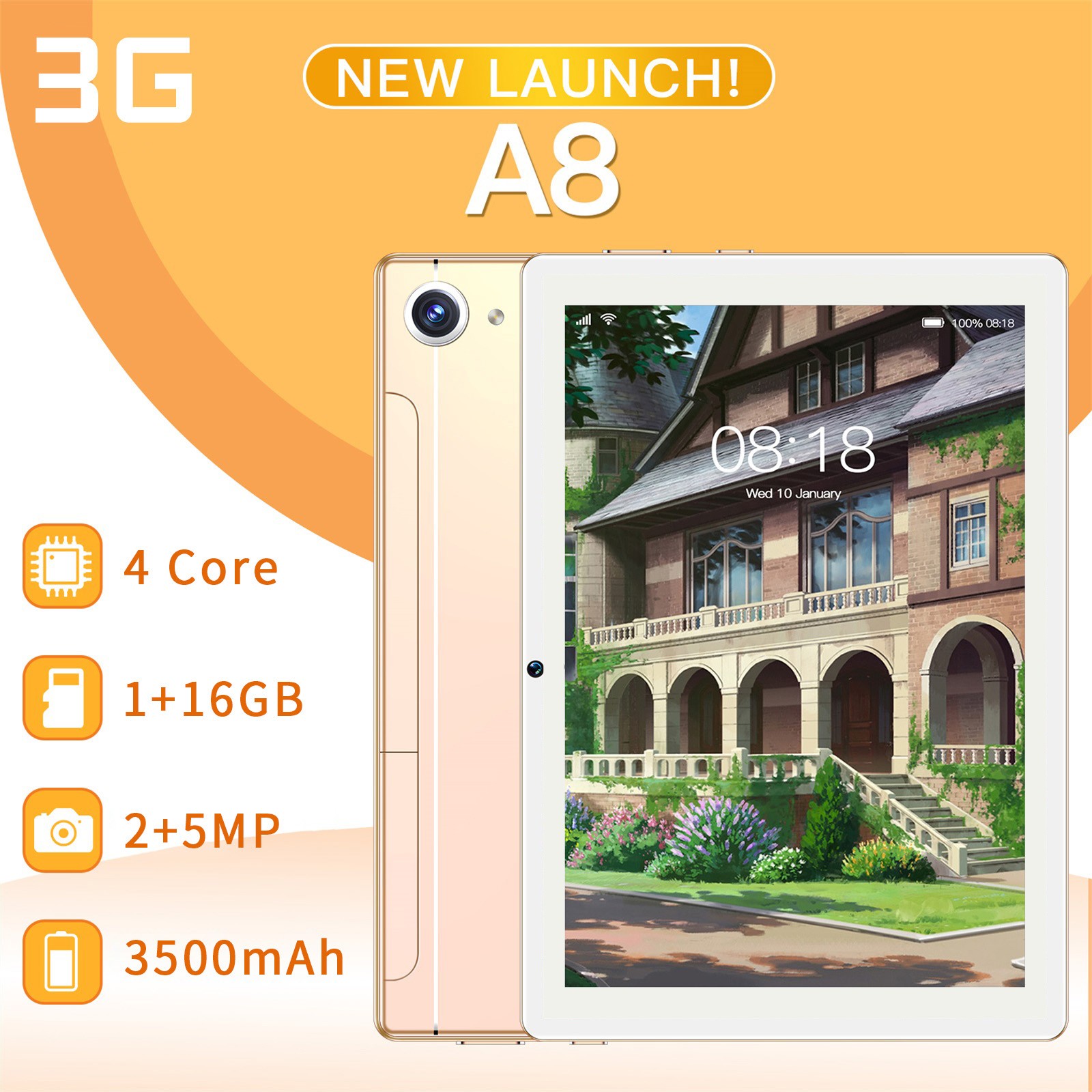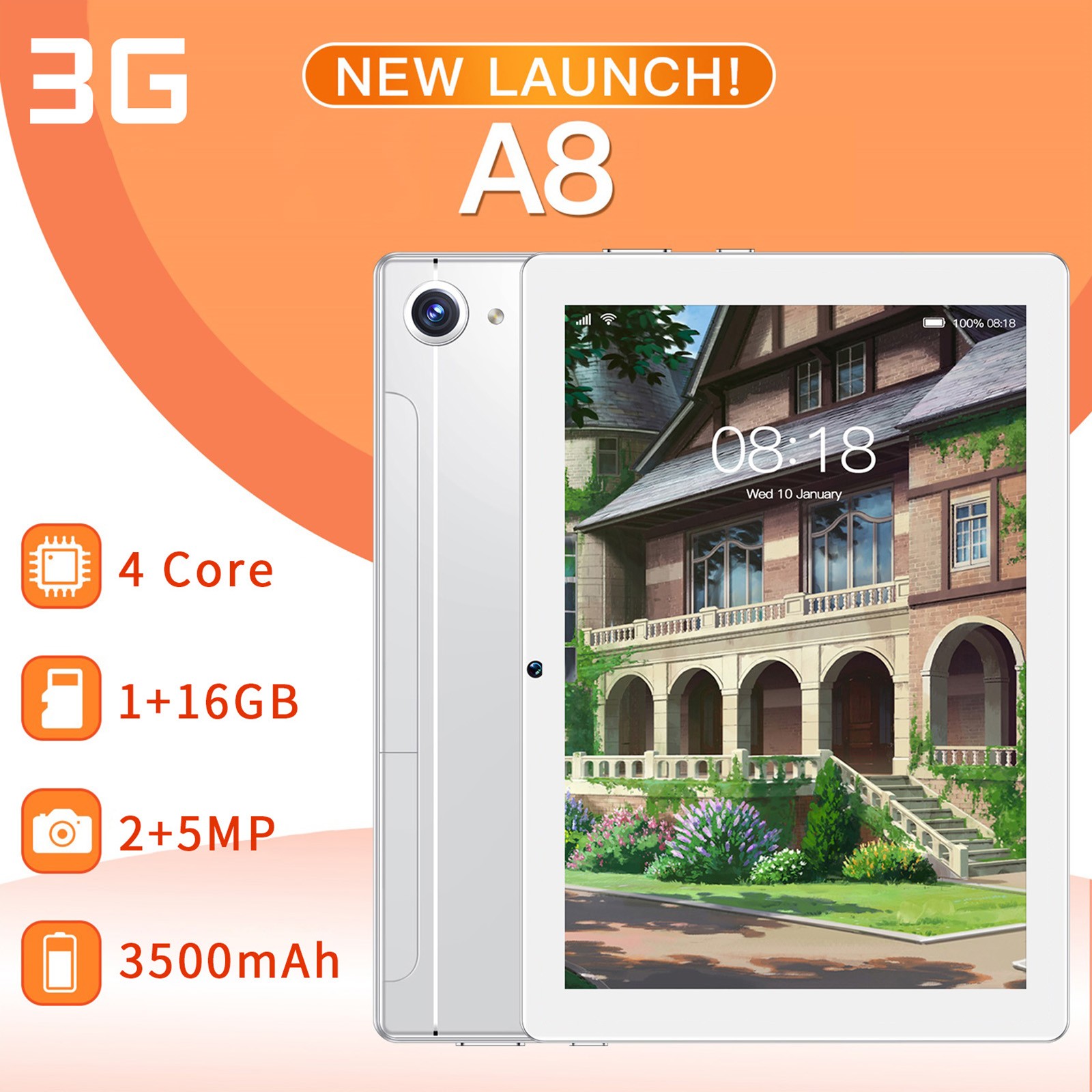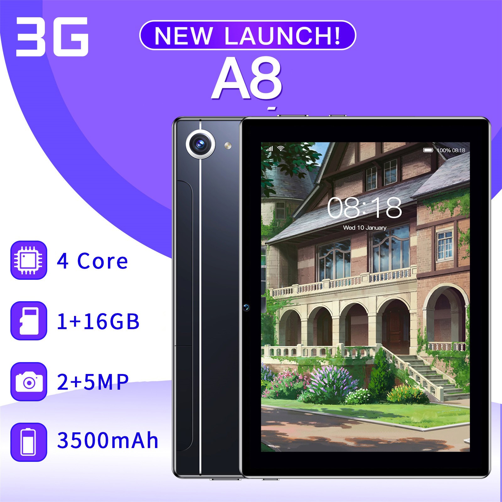 Задняя HD камера: A8 имеет комбо камеры 5 МП. Основная камера поддерживает светодиодный фонарик для повышенной чувствительности в задний светильник или низкий светильник, гарантируя, что ваши фотографии останутся четкими и яркими.