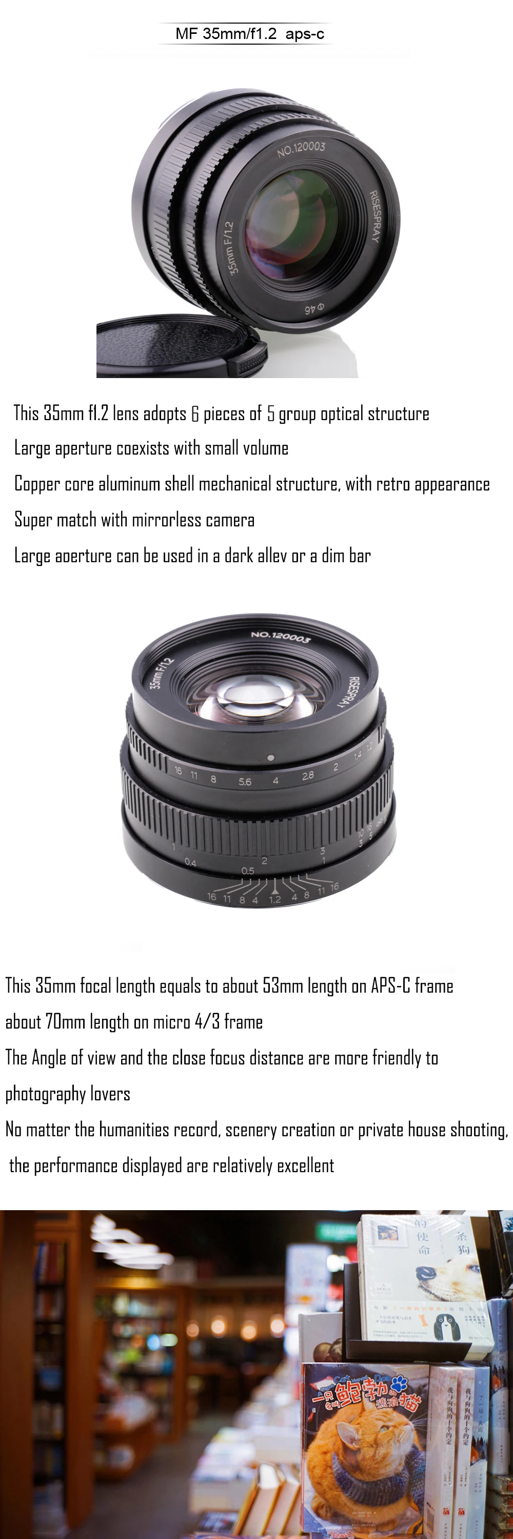 35 мм f/1,2 ручной объектив представляет собой Сверхбыстрый объектив, который дает 35 мм эквивалентное фокусное расстояние 56 мм поле зрения. Быстрая Диафрагма f/1,2 и 9 лезвий диафрагмы позволяют фотографам создавать кремовую мелкую глубину поля, и это чрезвычайно подходит для съемки с низким светильник. Компактный размер и легкий вес делают его идеальным компаньоном для беззеркальных систем камеры. 8 элементов в оптическом дизайне 6 групп обеспечивают большую остроту в центре и углах даже при f/1,2. Круг изображения покрывает APS-C Размер датчика и подходит для большинства беззеркальных камер. Нет необходимости использовать любой адаптер крепления, непосредственно установленный на камере.