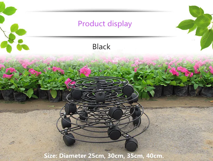 Этот продукт представляет собой плоскую мобильную цветочную полку. В безопасности, подходит для семьи.Цвета: белый, черныйРазмер: Диаметр 25 см, 30 см, 35 см, 40 см.