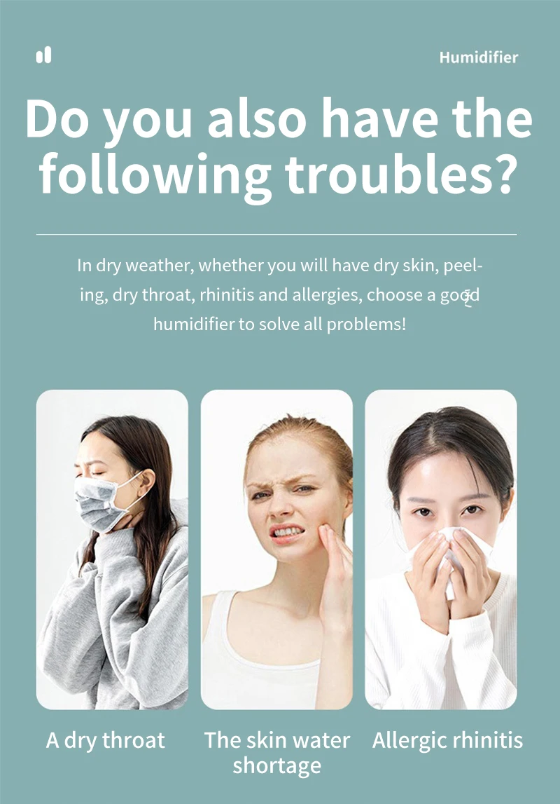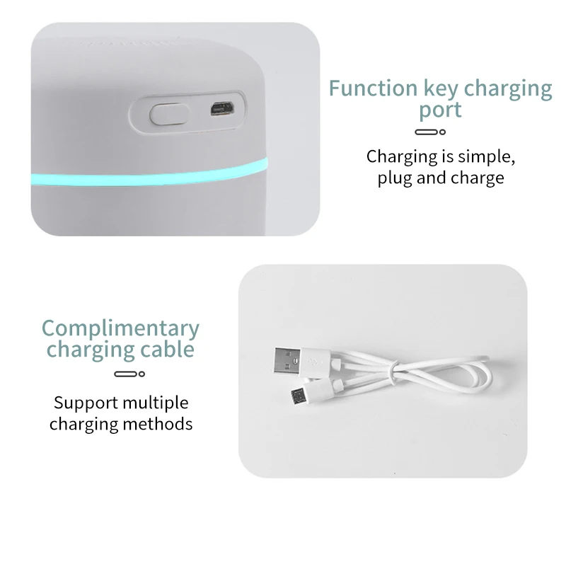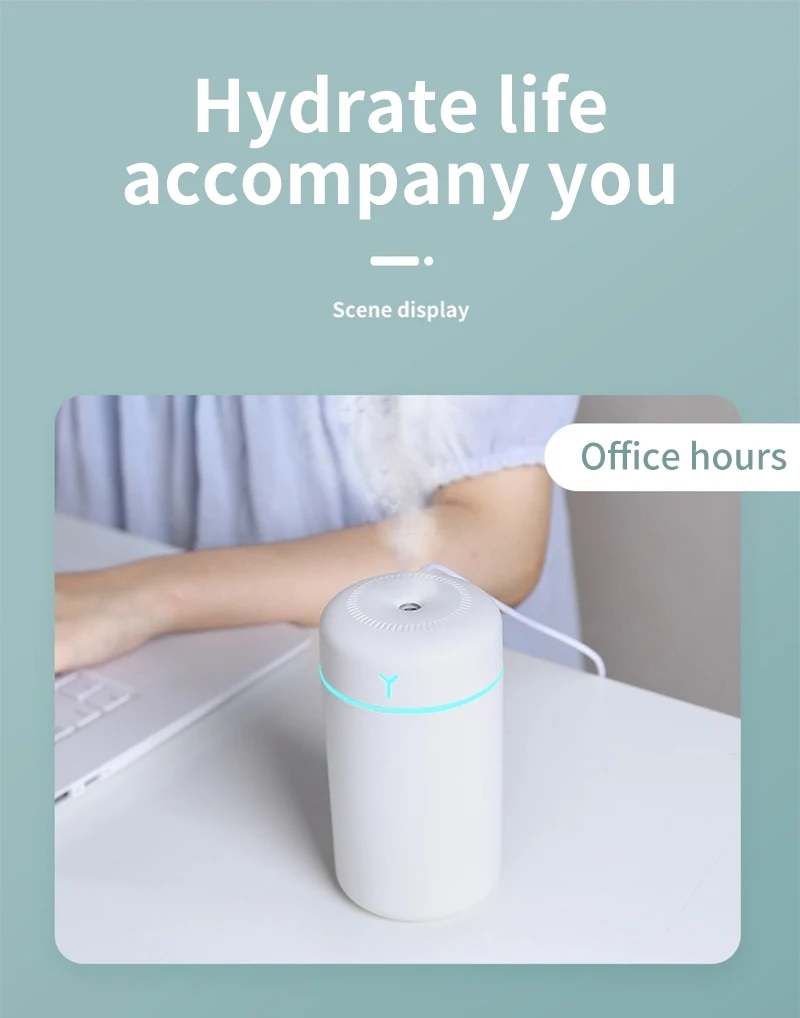 【Mini humidifier】портативный и компактный дизайн позволяет легко носить его в любом месте. Источник питания USB совместим с usb-портом любого устройства, обеспечивая его использование в спальне, офисе, автомобиле.