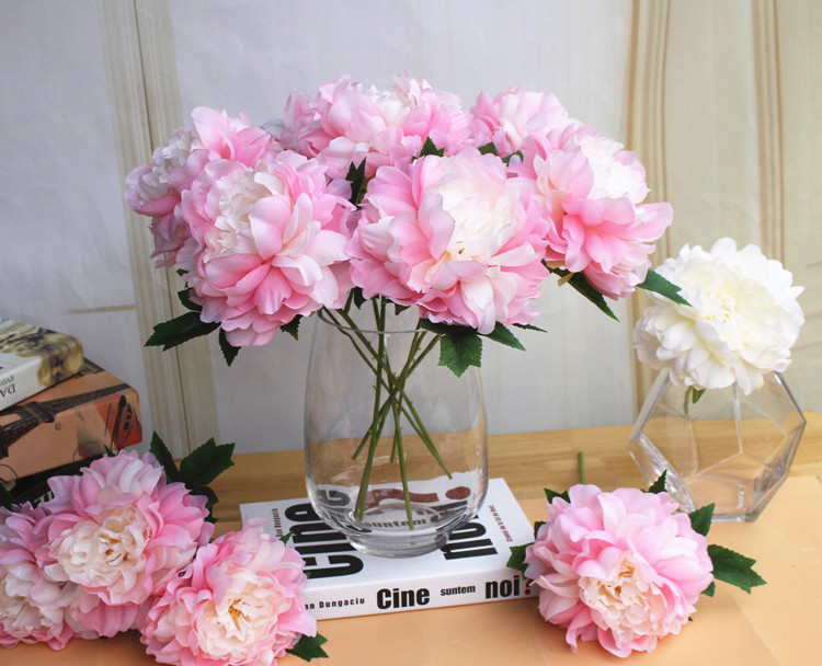 5 шт. короткие ветки большой цветок пиона искусственные шелковые цветы для дома украшение для свадебной вечеринки цветочные композиции реквизит для фотосессии